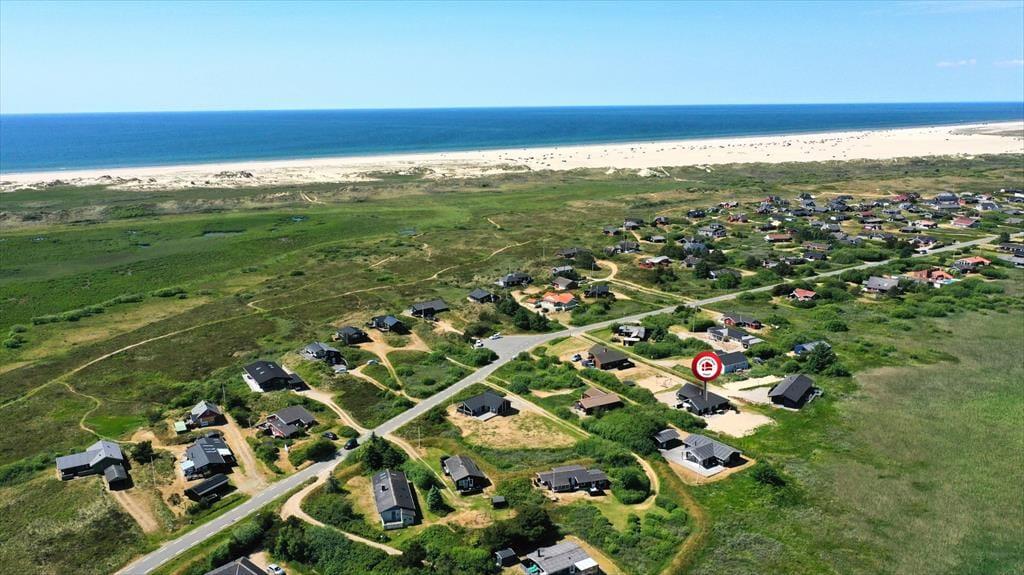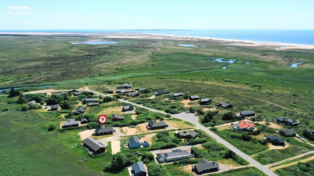 Dette lækre sommerhus har en skøn placering for enden af en lille stikvej: Mod øst har I udsigt til Lakolk Sø, og mod vest ligger den dejlige Lakolk Strand ligger få hundrede meter væk – og lige ved huset har I adgang til sjove legefaciliteter.