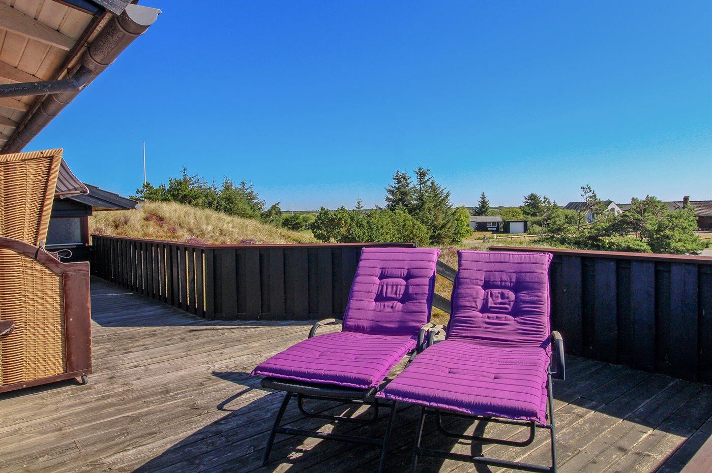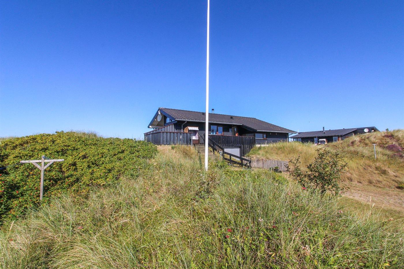 Ferieboligen er beliggende på en 1800 m² stor naturgrund. Der er 300 m til havet. Der er 3800 m til Vadehavet. Der er en sø i en afstand af 4300 m. Nærmeste forretning er beliggende i en afstand af 1300 m. Der er en golfbane i en afstand af 6200 m. Til ferieboligen hører åbent terrasseareal. Desuden er der overdækket terrasse. Sandkasse. Grill til rådighed. Parkering ved ferieboligen.