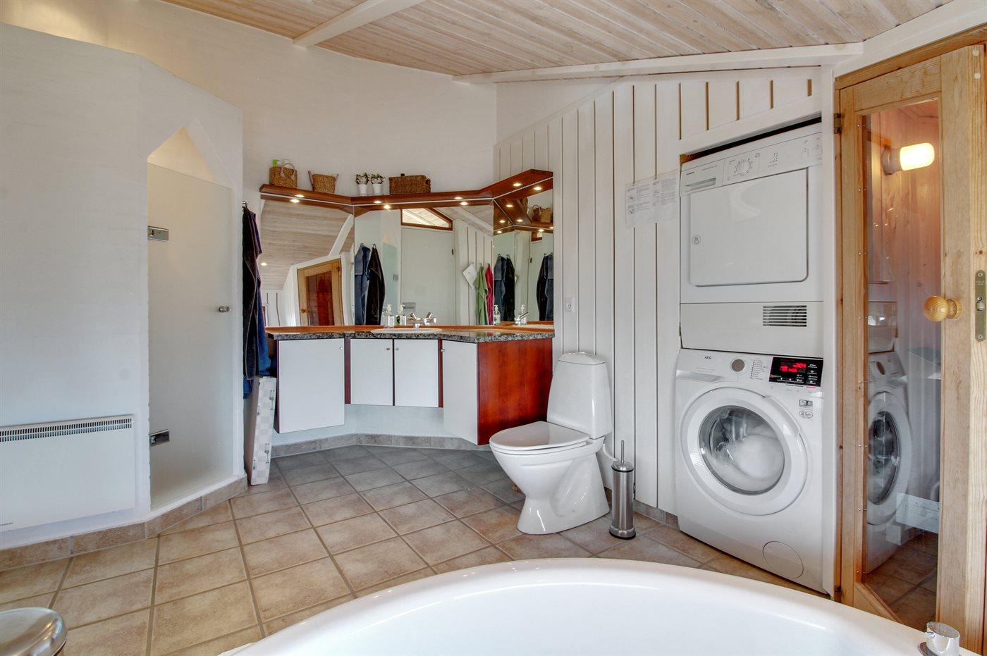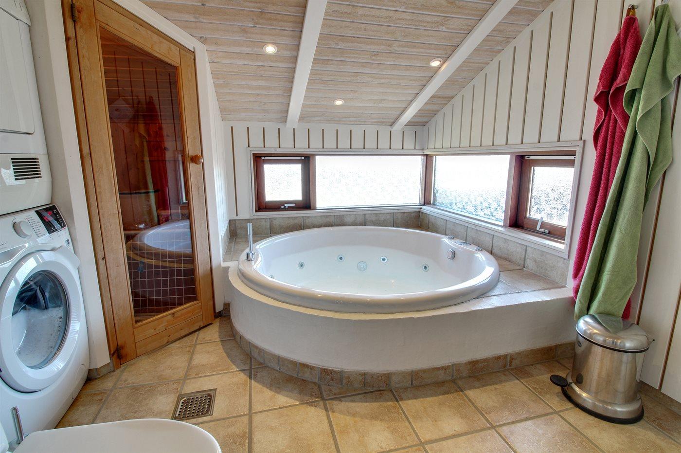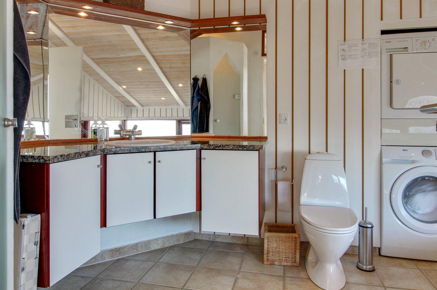 Der er 2 badeværelser med bruseniche og 2 toiletter. Der er gulvvarme på 2 badeværelser. I saunaen er der mulighed for afslapning.