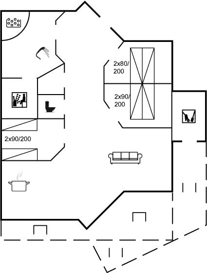 Der er 1 badeværelse med bruser og 1 toilet., heraf 1 gæstetoilet. Der er gulvvarme på 1 badeværelse. I saunaen er der mulighed for afslapning.
