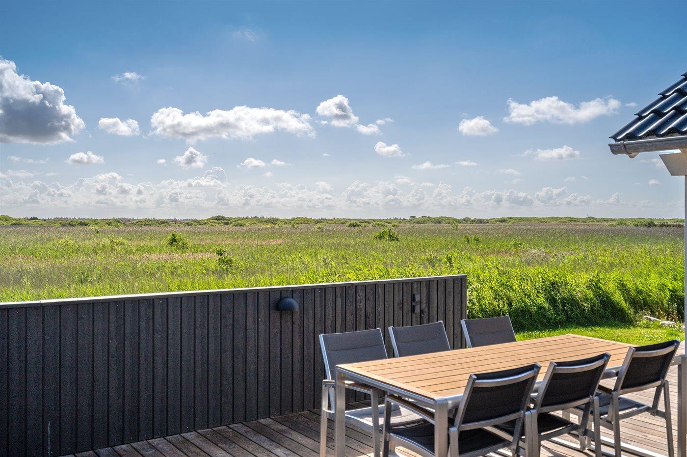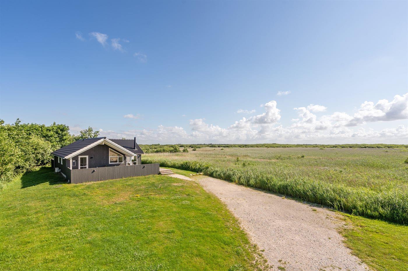 Ferieboligen er beliggende på en 1200 m² stor naturgrund. Der er 700 m til havet. Der er 3500 m til Vadehavet. Nærmeste forretning er beliggende i en afstand af 400 m. Der er en golfbane i en afstand af 7500 m. Til ferieboligen hører 150 m² terrasseareal. Udendørs infrarød sauna. Udendørs bruser. Parkering ved ferieboligen.