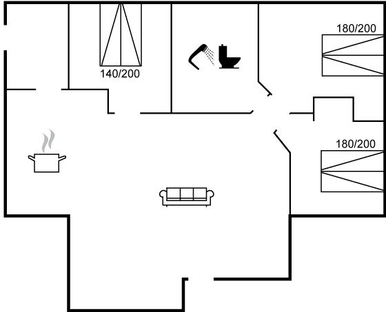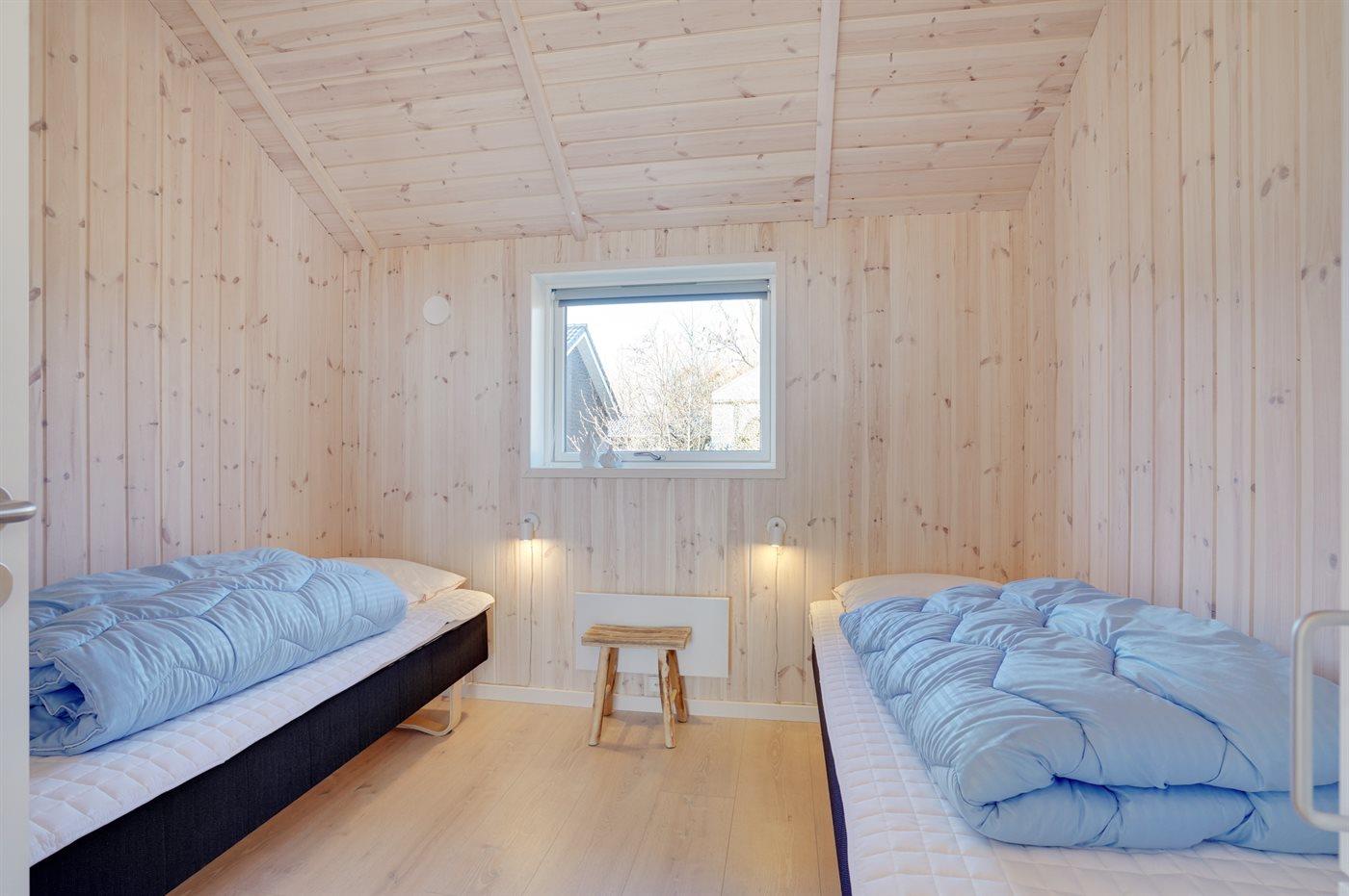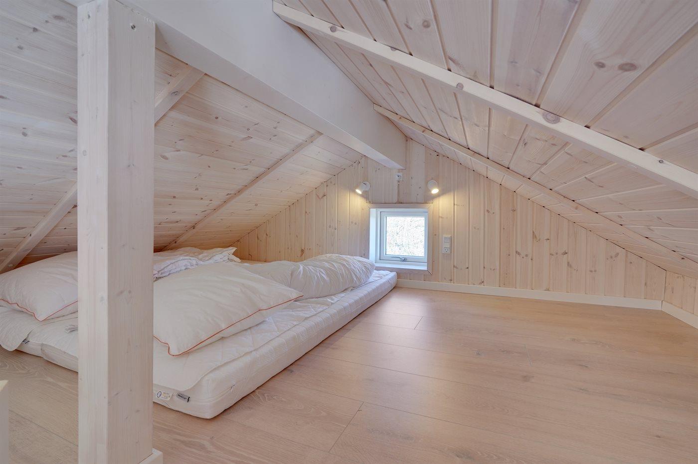 Der er i alt 3 soveværelser. Sovepladserne fordeler sig på: 6 sovepladser i dobbeltsenge. 2 sovepladser på madrasser. 2 af disse sovepladser befinder sig på husets hems.