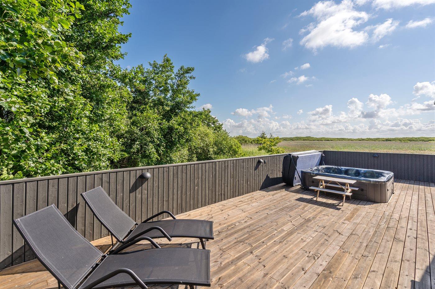 Der er mulighed for afslapning i udendørs standvandsspa til 7 personer.