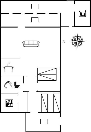 Der er 1 badeværelse med bruseniche og 1 toilet. I saunaen er der mulighed for afslapning.