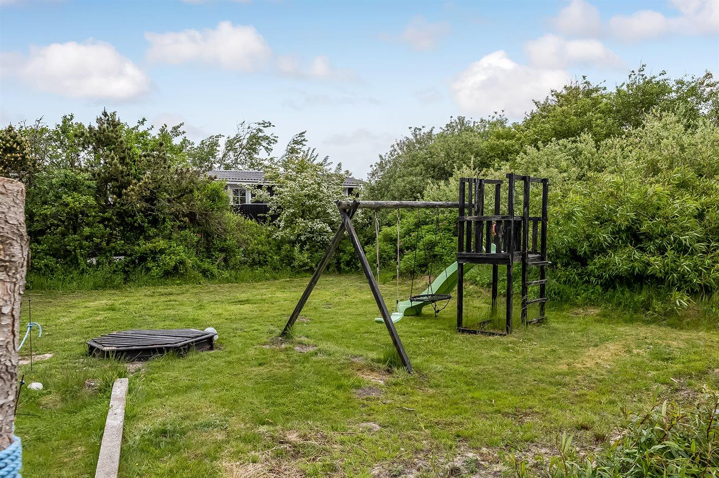 Ferieboligen er beliggende på en 977 m² stor naturgrund. Der er 500 m til havet. Nærmeste forretning er beliggende i en afstand af 500 m. Der er en golfbane i en afstand af 12000 m. Til ferieboligen hører 45 m² terrasseareal. Desuden er der 9 m² overdækket terrasse. Der er redskabsrum. Gynge. Sandkasse. Der er carport til rådighed. Parkering ved ferieboligen.