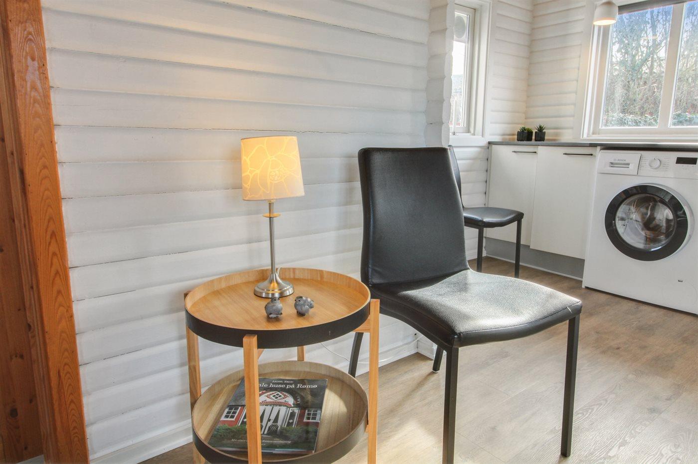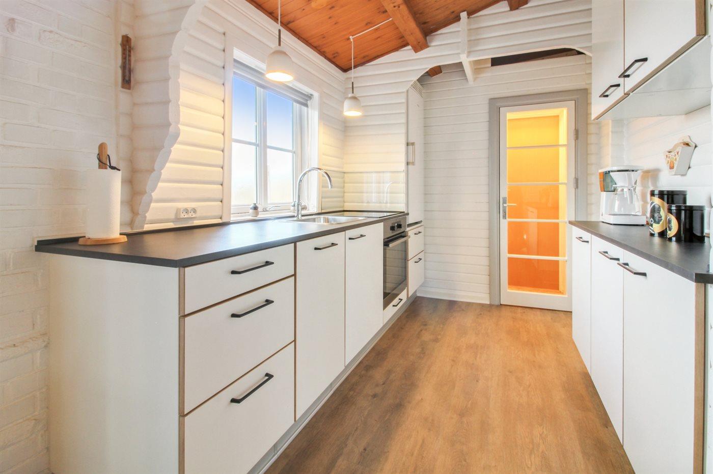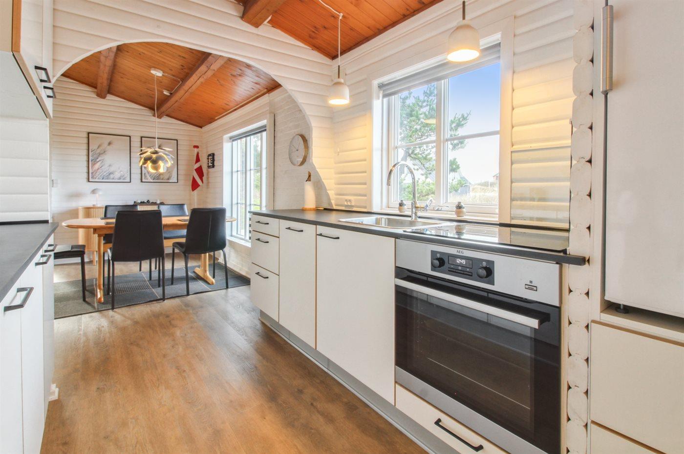 Køkkenet er udstyret med 1 køleskab. Der er 4 induktionskogeplader, bageovn, varmluftovn samt opvaskemaskine.