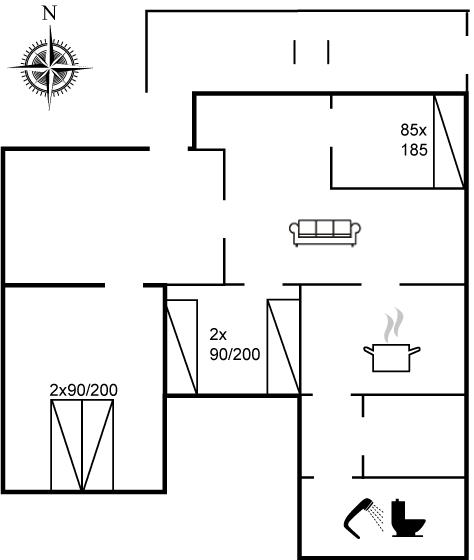 Der er i alt 3 soveværelser. Sovepladserne fordeler sig på: 2 sovepladser i dobbeltseng. 3 sovepladser i enkeltsenge.