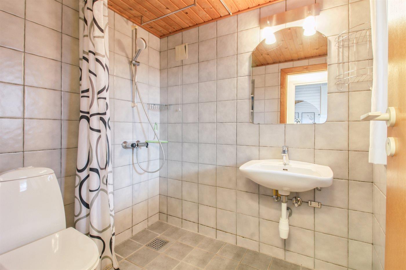 Der er 1 badeværelse med bruser og 1 toilet.. Der er gulvvarme på 1 badeværelse.