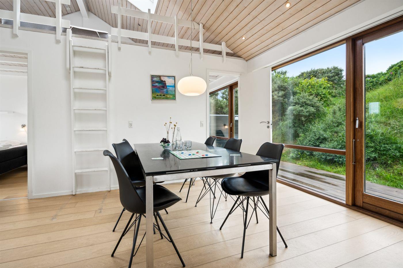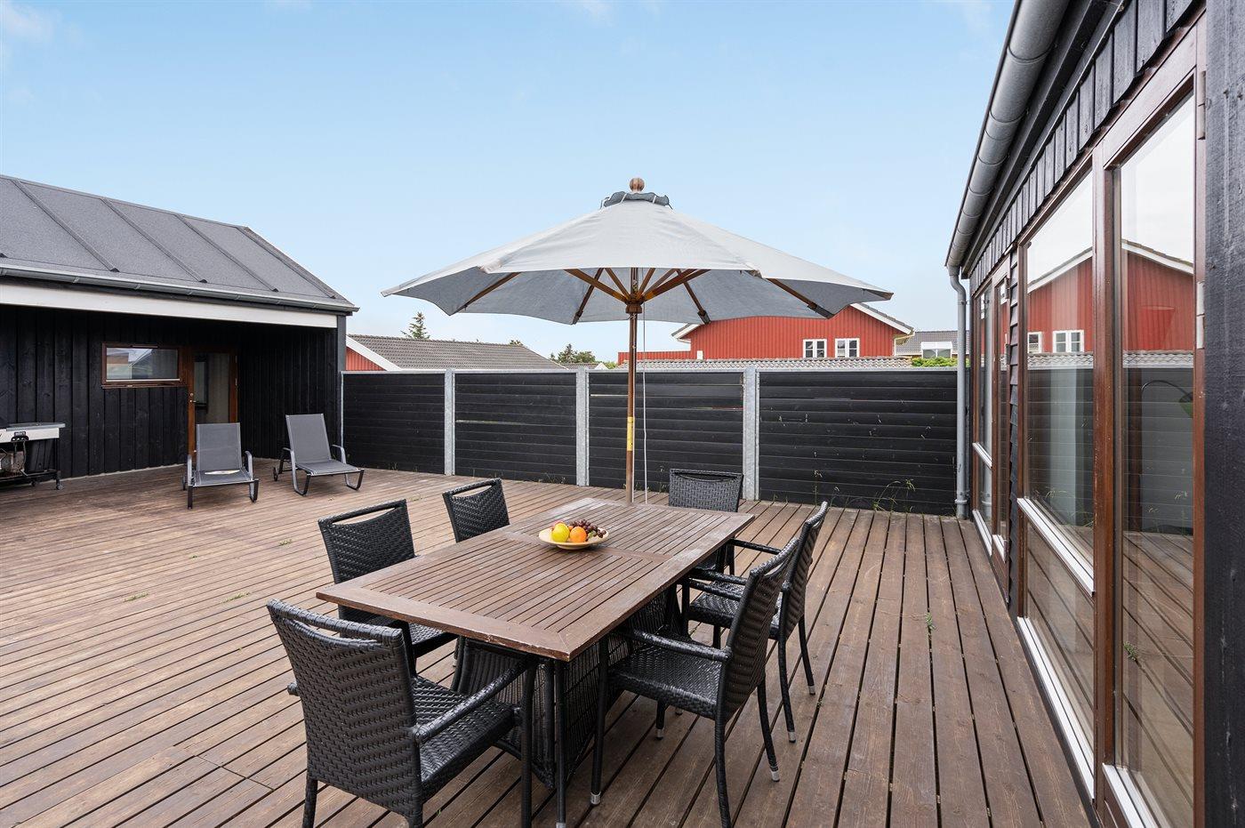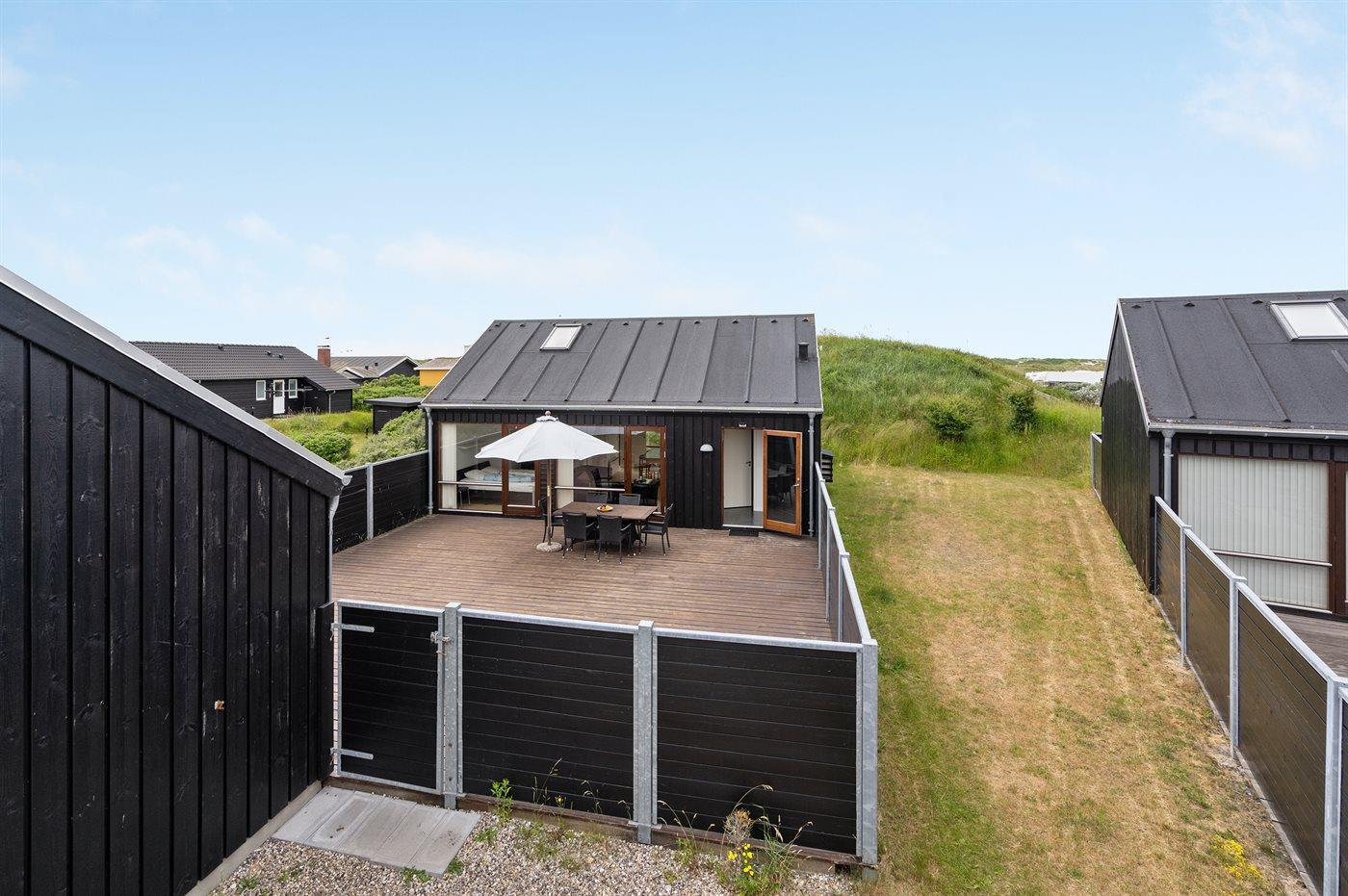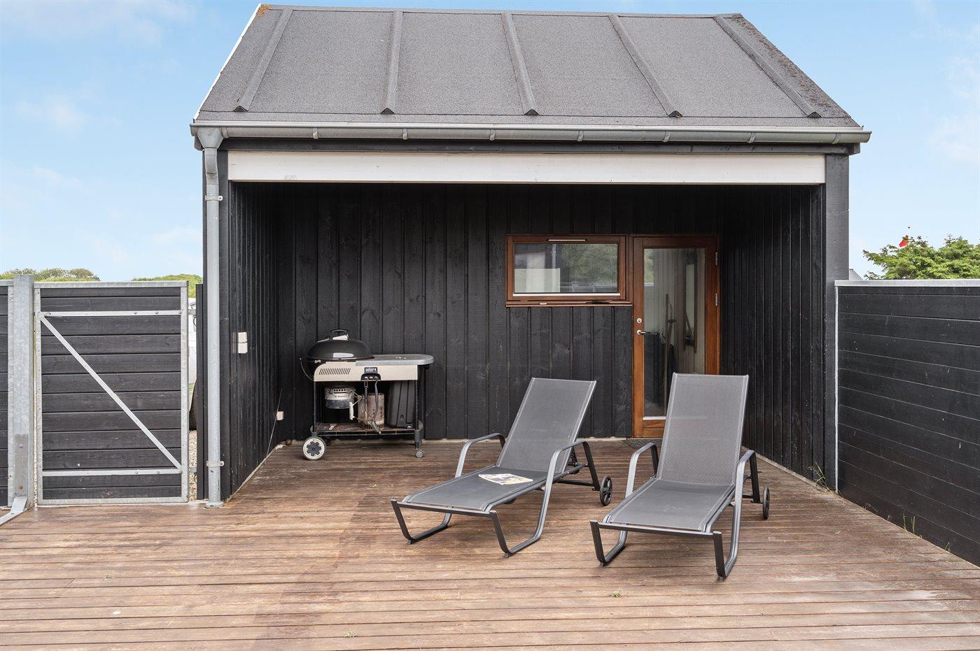 Ferieboligen er beliggende på en 300 m² stor naturgrund. Der er 200 m til havet. Nærmeste forretning er beliggende i en afstand af 100 m. Til ferieboligen hører i alt 100 m² lukket terrasse. Heraf er 8 m² overdækket. Grill til rådighed. Parkering ved ferieboligen.