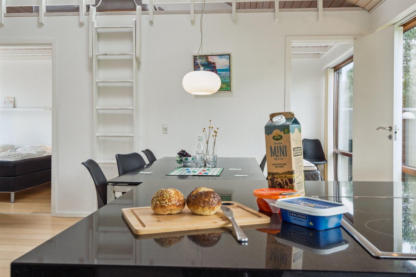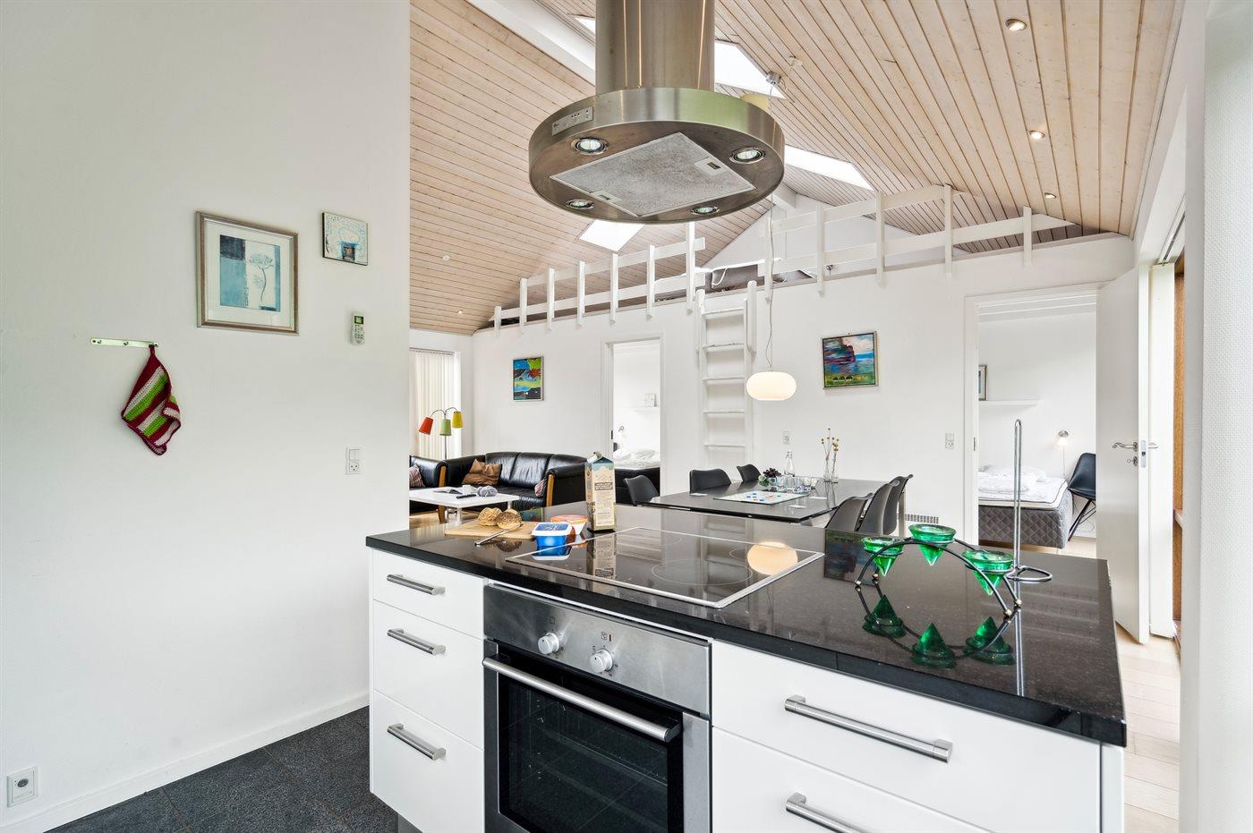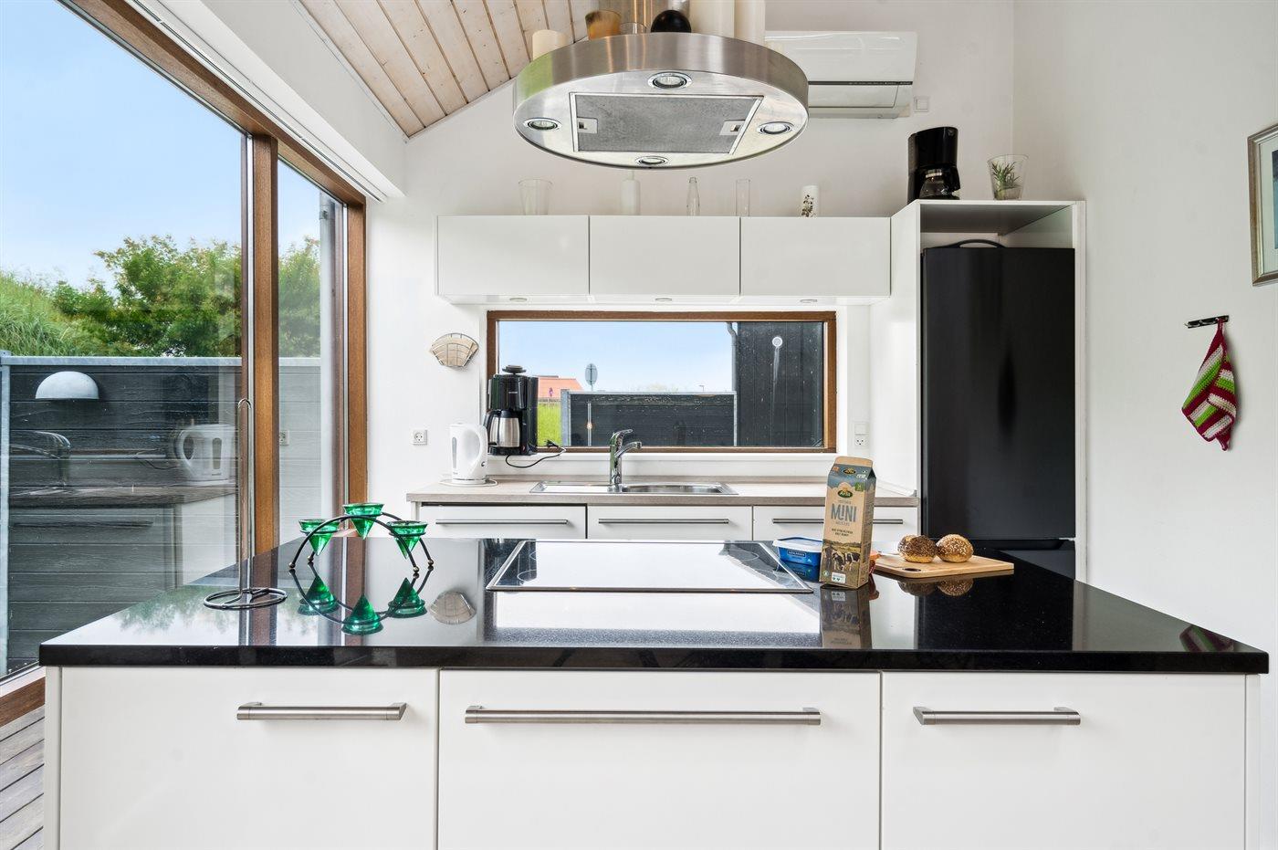 Køkkenet er udstyret med 1 køleskab. Der er 4 keramiske kogeplader, varmluftovn samt opvaskemaskine.