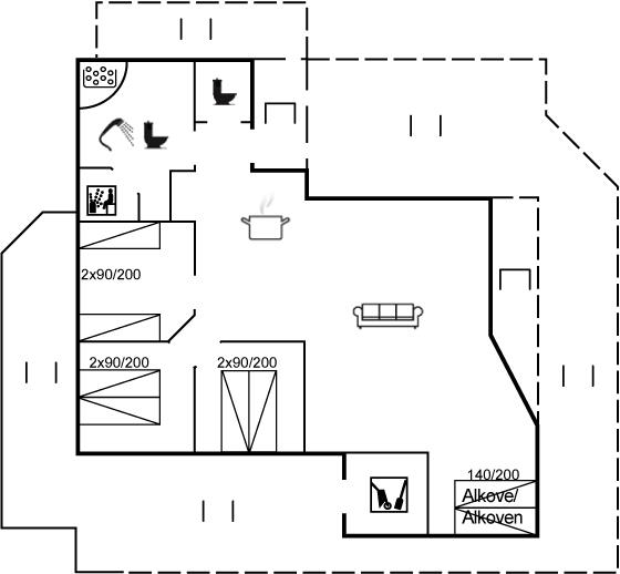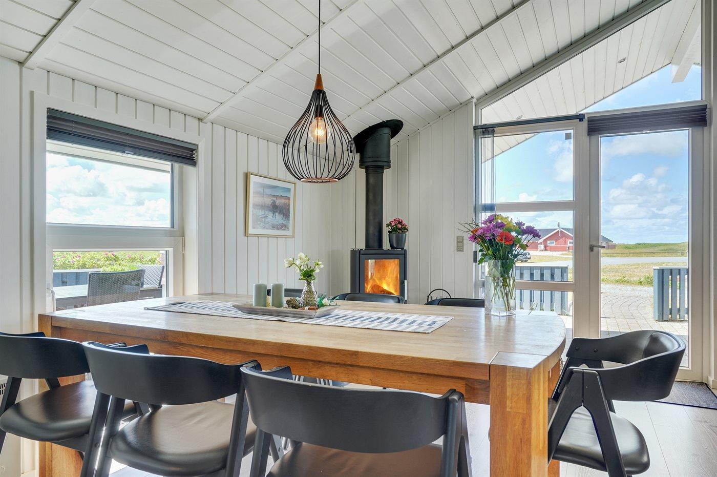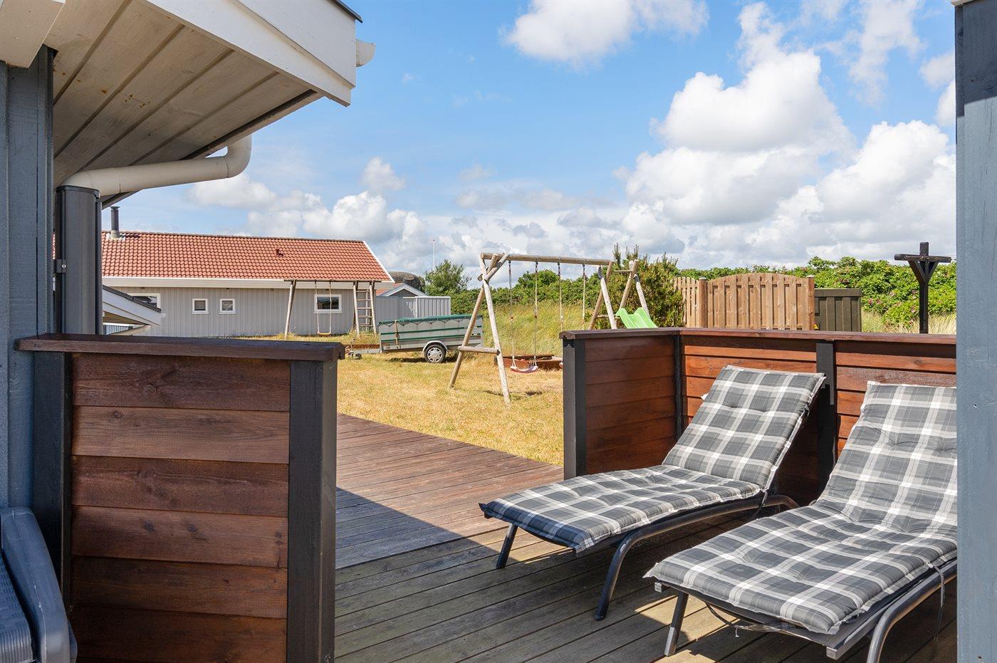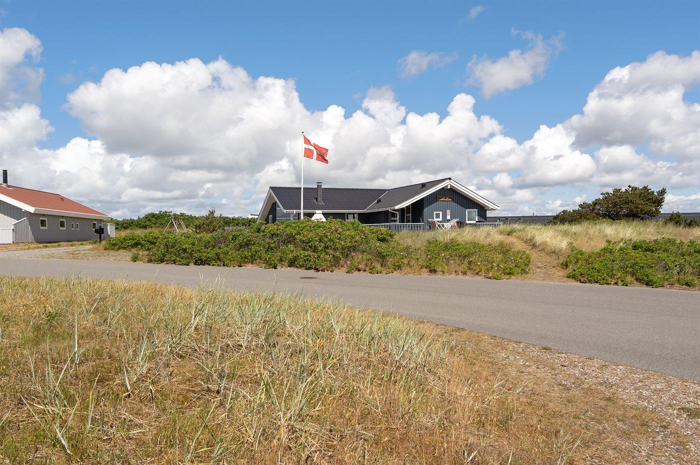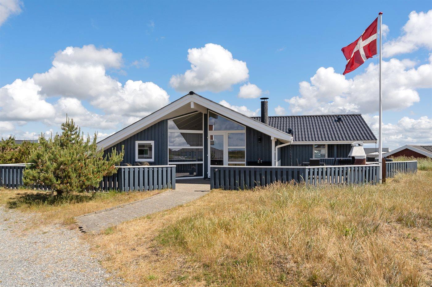 På en naturgrund kun 400 m fra stranden ligger dette dejlige sommerhus i træ, bygget i 2000 og senest renoveret i2020 med nyt køkken. Til huset hører et stort, såvel åbent som overdækket terrasseareal med havemøbler og stor stengrill/pejs - her kan I bl.a. sidde og nyde morgensolen. Badeværelse med 2-pers. spa, bruser, gulvvarme, vaskemaskine, tørretumbler samt direkte adgang til saunaen. Gæstetoilet med gulvvarme. Det veludstyrede køkken med opvarmet gulv ligger i forbindelse med stuen og indeholder bl.a. fryser, mikrobølgeovn og opvaskemaskine. Stor, dejlig spise- og opholdsstue med bl.a. brændeovn, kabel-TV, DVD-afspiller, stereoanlæg med CD-afspiller samt alkove med 2 sovepladser. Fra spisestuen er der endvidere en flot udsigt til klitterne. De sidste 6 sovepladser er fordelt på 3 værelser; 2 med dobbeltseng og 1 med 2 enkeltsenge. Af yderligere udstyr kan gratis, trådløs internetforbindelse nævnes (computer skal medbringes) og der er installeret energibesparende varmepumpe. Til de små feriegæster er der gynge og sandkasse til rådighed på grunden. Huset ligger kun gå minutters gang fra den skønne sandstrand.