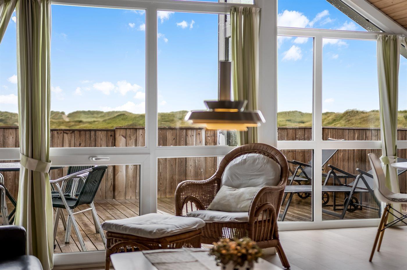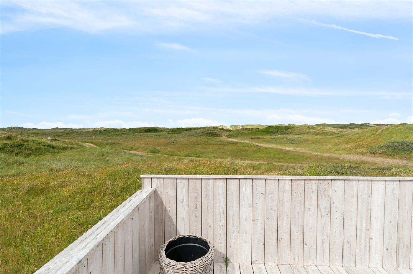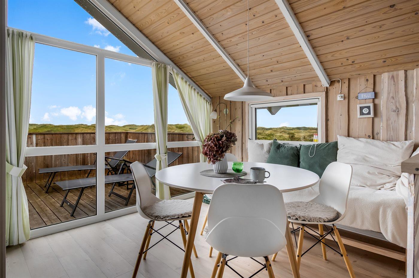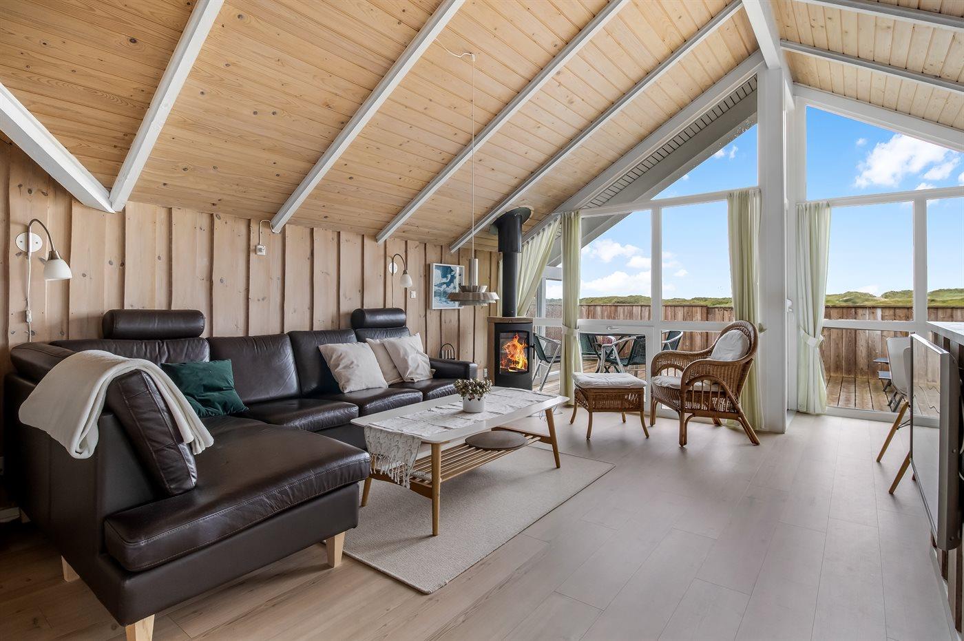 Dette hyggelige sommerhus ligger i et naturskønt område – ikke langt fra stranden med udsigt ud over klitterne fra både hus og terrasse.