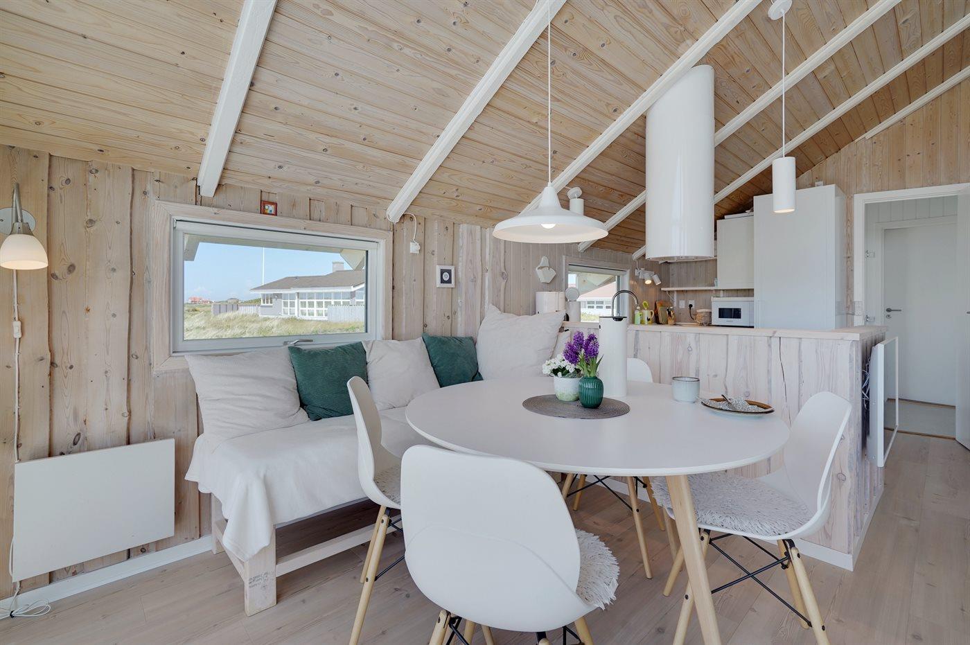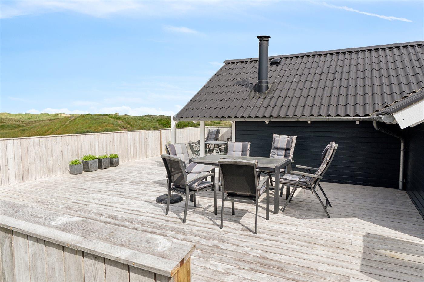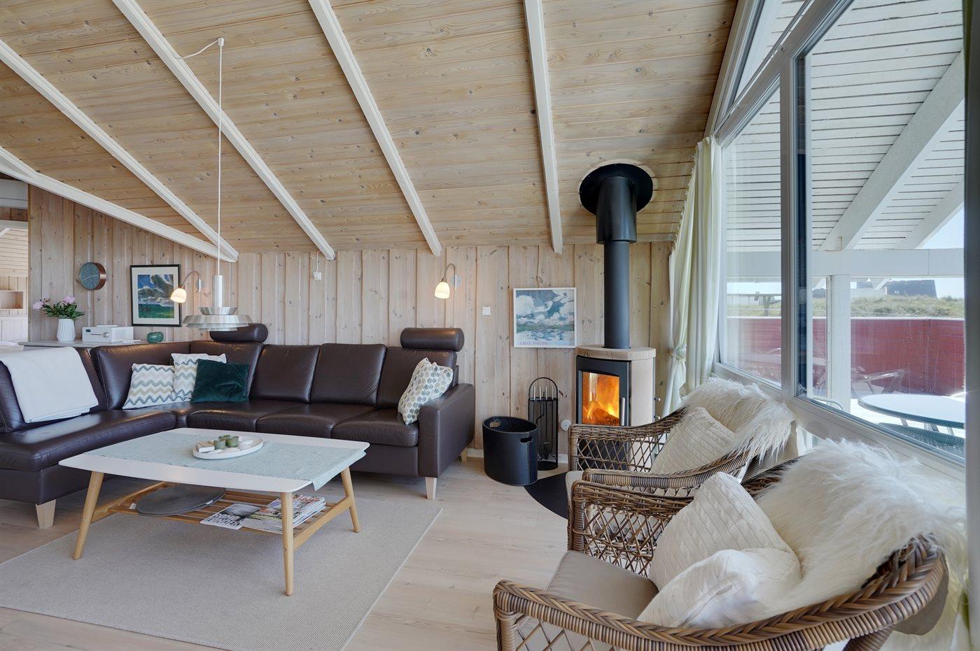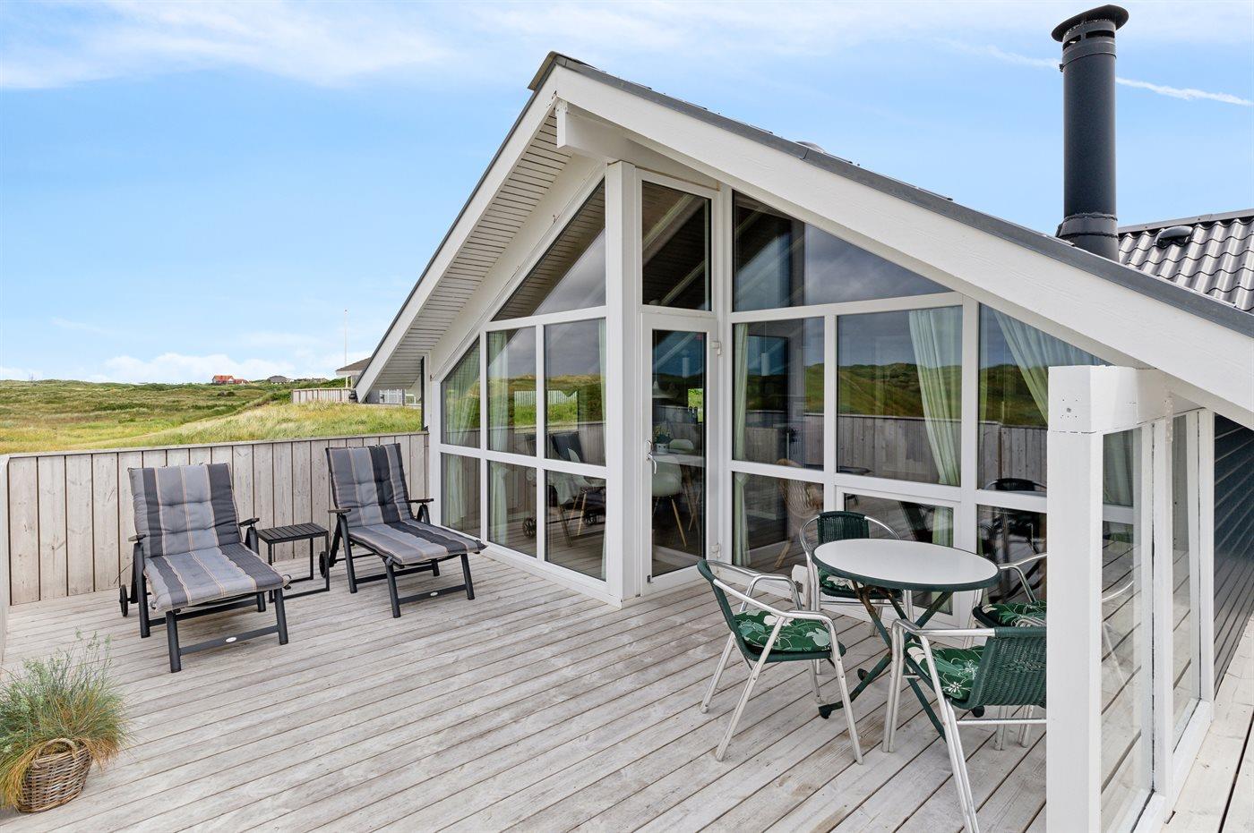 Dette hyggelige sommerhus ligger i et naturskønt område – ikke langt fra stranden med udsigt ud over klitterne fra både hus og terrasse.
