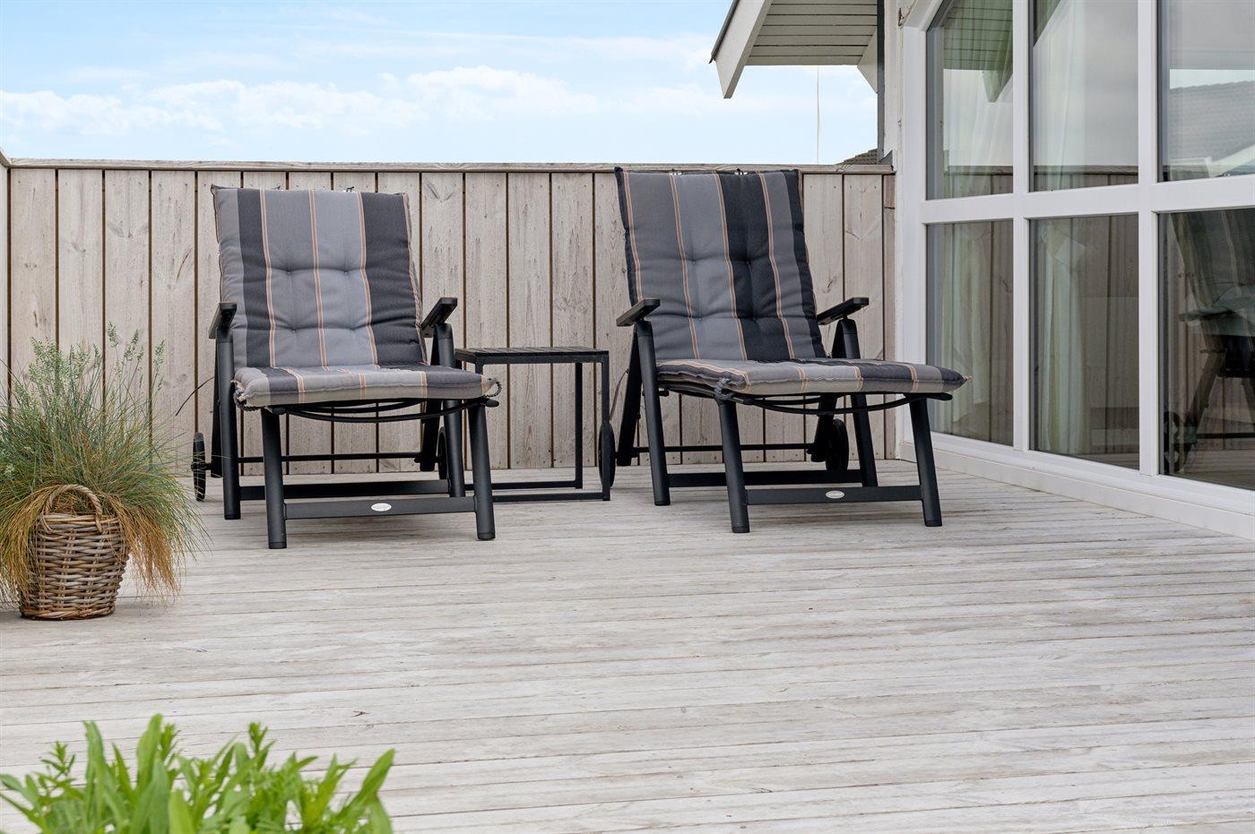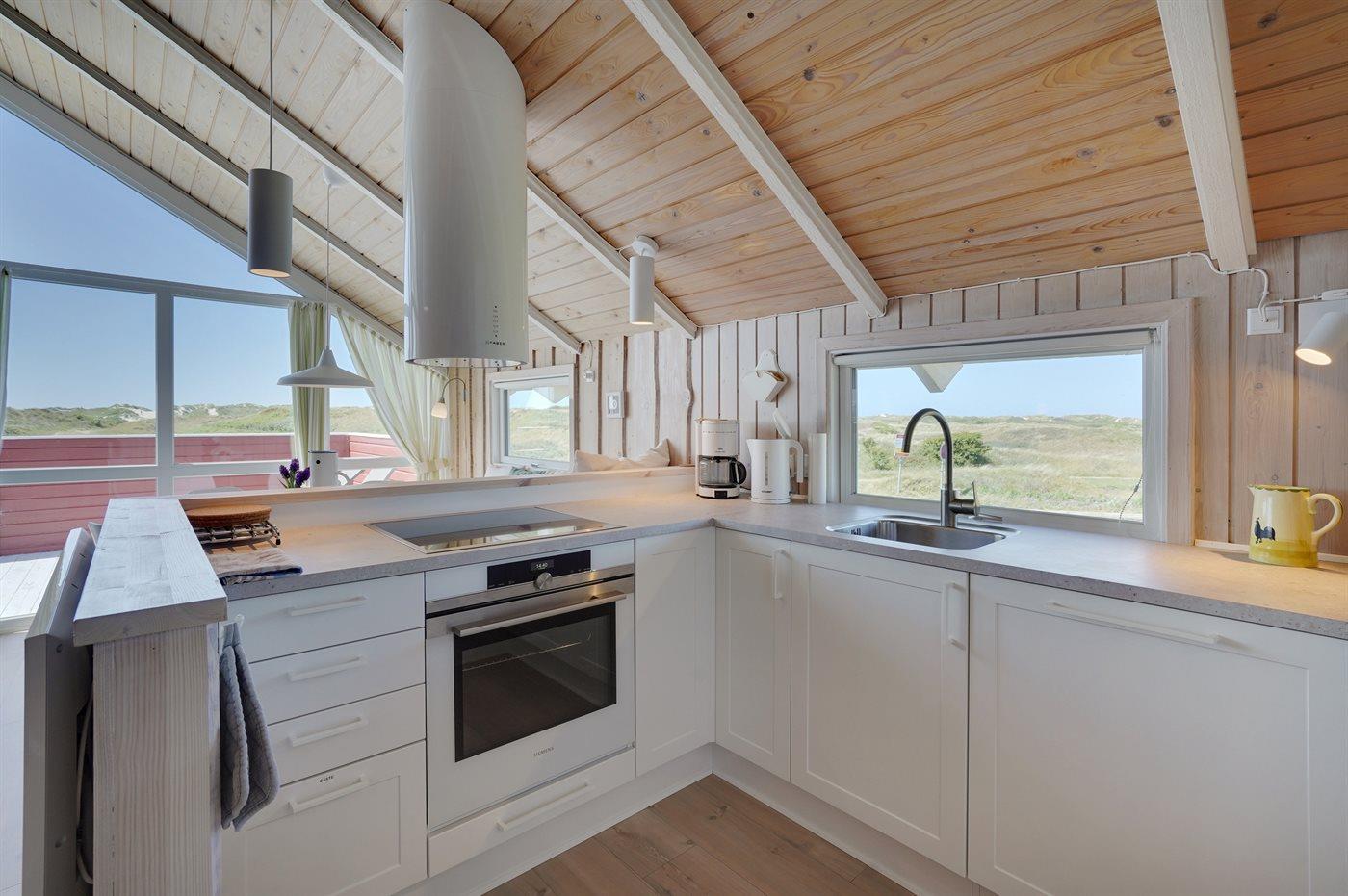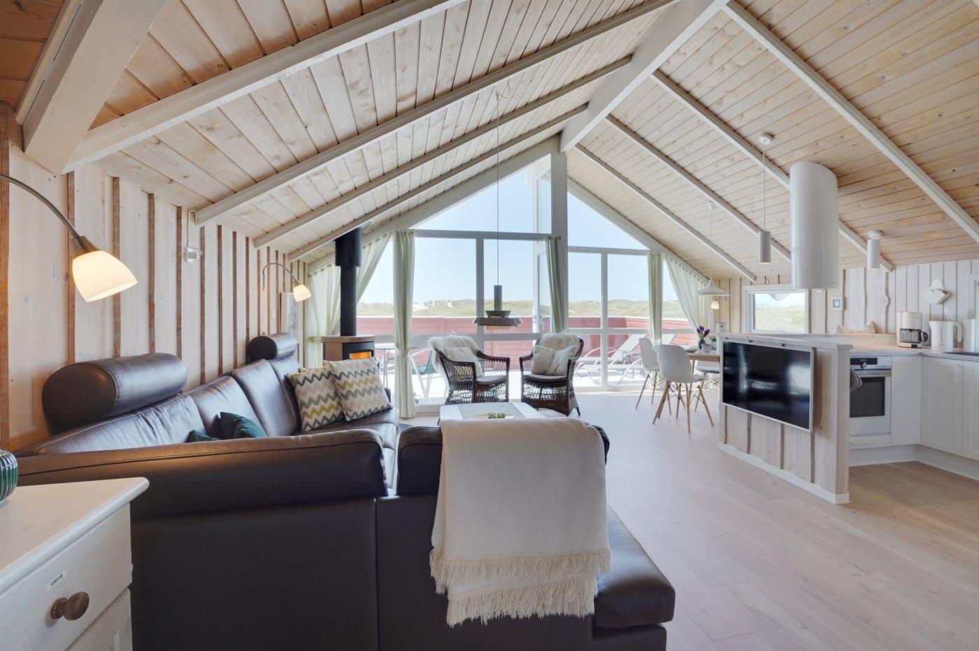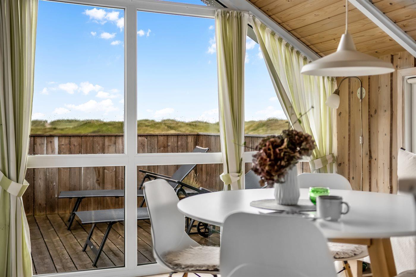 Dette hyggelige sommerhus ligger i et naturskønt område – ikke langt fra stranden med udsigt ud over klitterne fra både hus og terrasse.