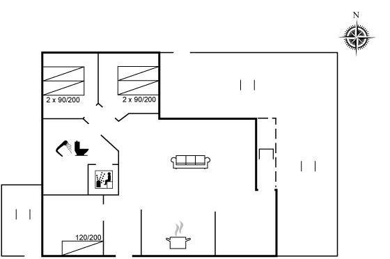 Der er i alt 3 soveværelser. Sovepladserne fordeler sig på: 4 sovepladser i dobbeltsenge. 1 soveplads i enkeltseng. Derudover er der 1 stk. barneseng.