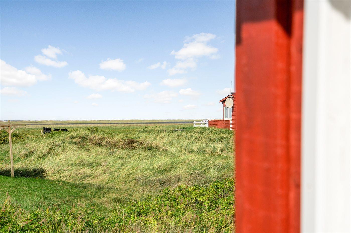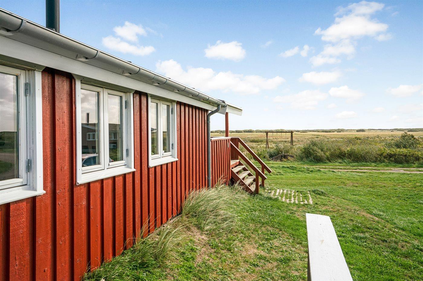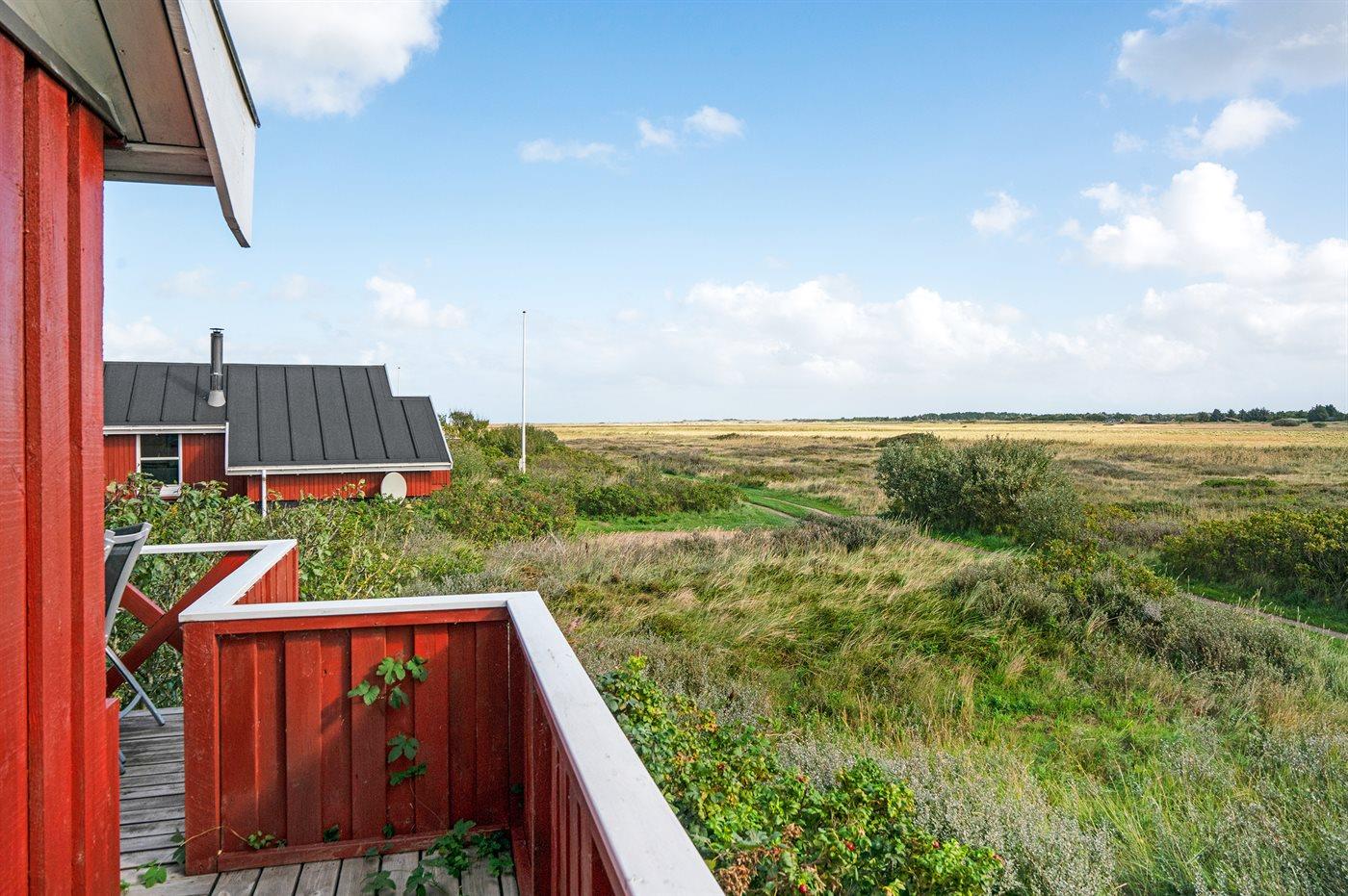 Dette sommerhus i træ med havudsigt, bygget i 1950 og moderniseret i 2003, ligger på en naturgrund kun 350 m fra Vesterhavet. Til huset hører åbent terrasseareal med havemøbler og gode læmuligheder samt en skøn udsigt over Vesterhavet. Indvendigt er væggene i stuen beklædt med træ. Badeværelse med gulvvarme, 2-pers. spa, bruser, vaskemaskine og tørretumbler. Det dejlige og nyrenoverede køkken er kombineret med den lyse opholdsstue, som er udstyret med bl.a. brændeovn, stereoanlæg med CD-afspiller, stort fladskærms-TV med parabolantenne og DVD-afspiller. Husets sovepladser fordeler sig på 1 værelse med dobbeltseng samt dobbelt sovesofa i opholdsstuen. Der er installeret energibesparende varmepumpe og stik til opladning af elbil (CEE stik).