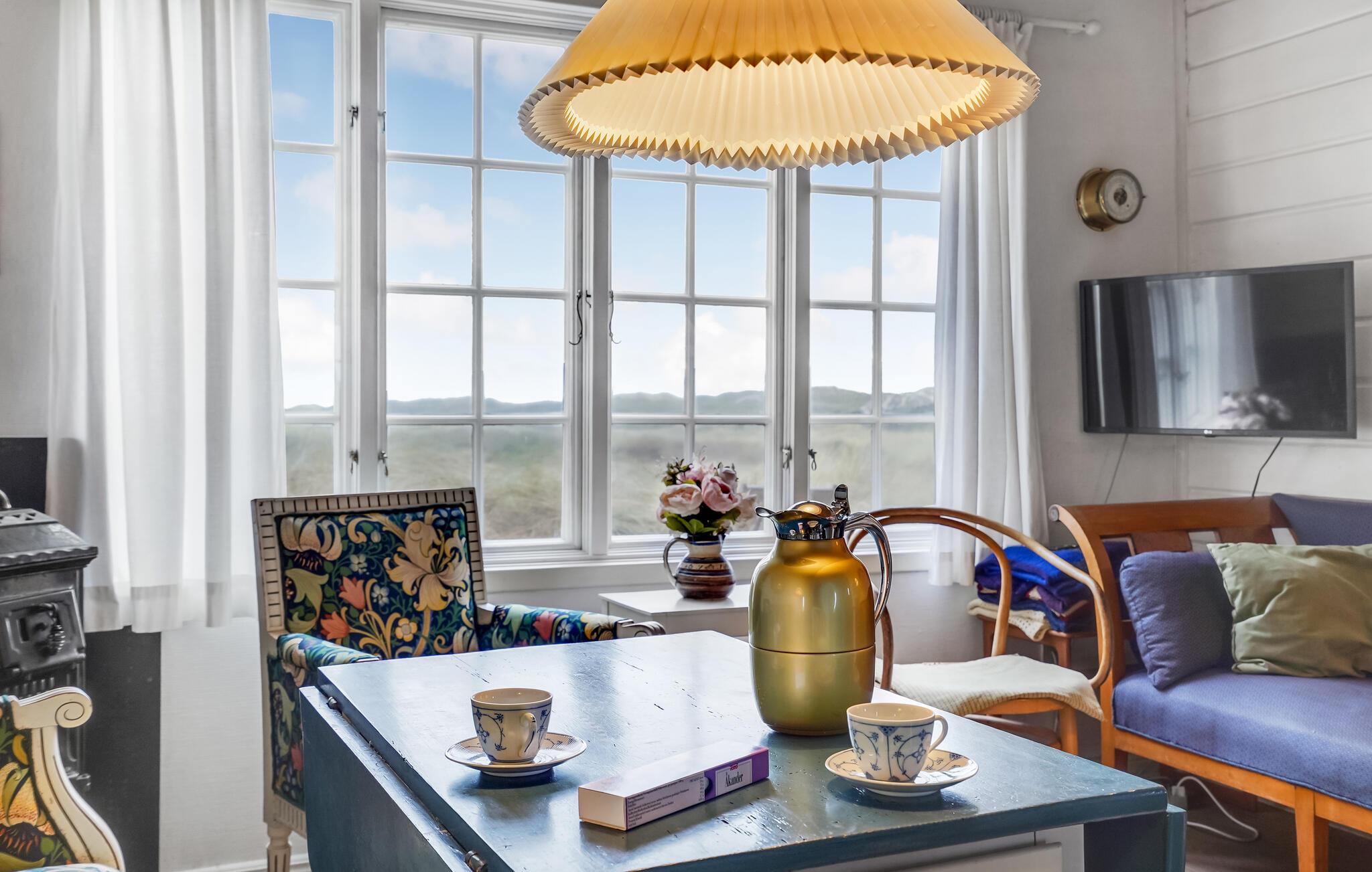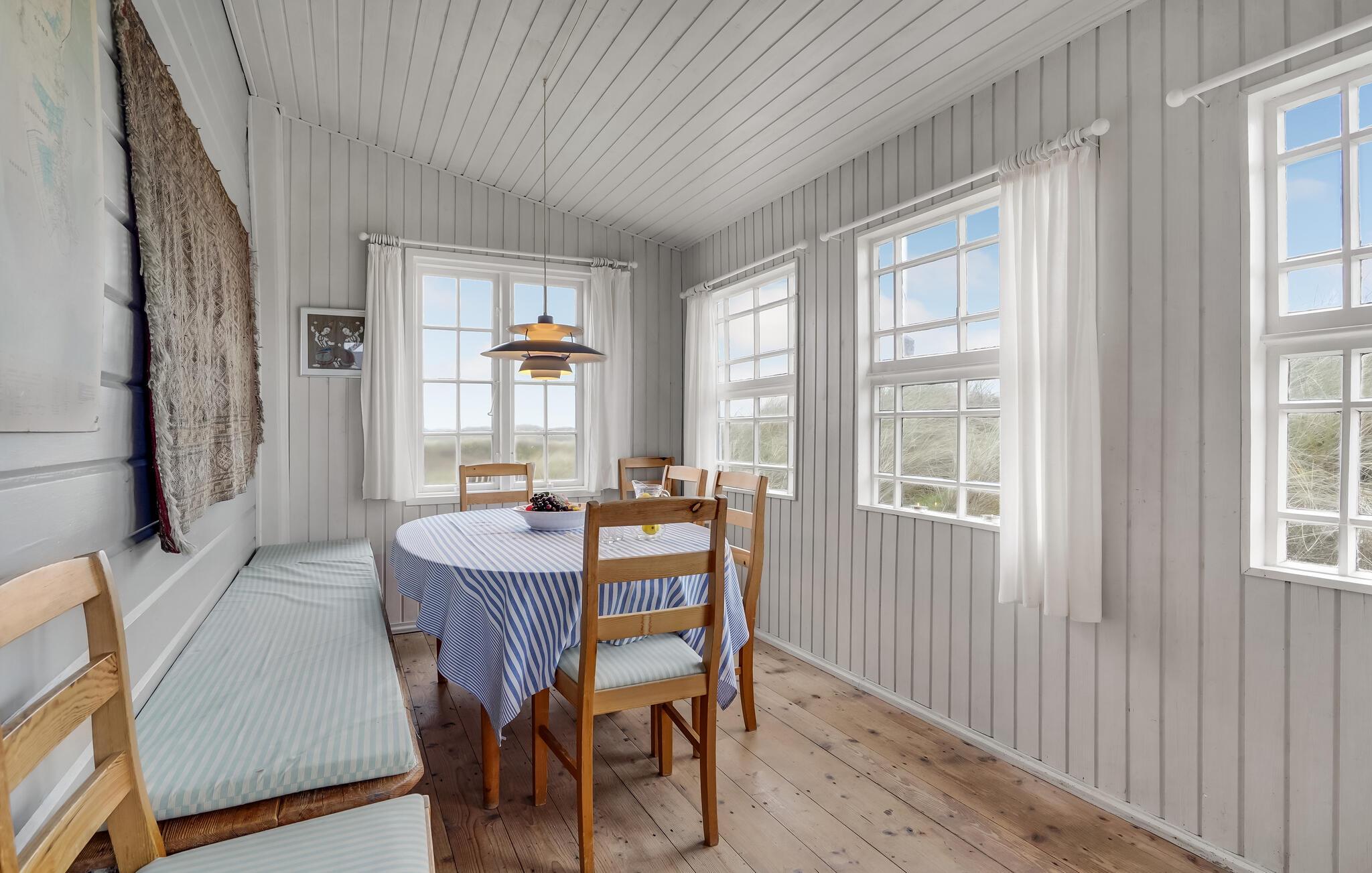 Når I træder ind i huset, mærker I straks den specielle, charmerende stemning, der bare lægger op til at slappe af og nyde ferien. Om morgenen kan I sidde ved bordet med en kop friskbrygget kaffe og lade blikket vandre over klitterne. Brug dagen på at læse jeres yndlingsbog eller spille et sjovt brætspil og tilbered senere et lækkert måltid til jeres familie i det store, moderne køkken.