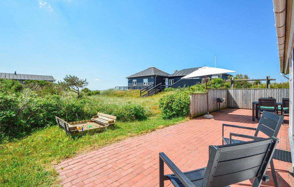 Dejligt feriehus ved Vesterhavet med åben terrasse og kort afstand til Lakolks brede sandstrand.