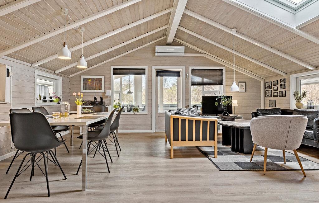 Rigtig lækkert feriehus beliggende på en stor naturgrund for enden af en lukket vej. Huset er utrolig velindrettet med et godt køkken/alrum med loft til kip og ovenlysvindue over sofagruppen, der giver et godt lysindfald. Nyd at sidde foran brændeovnen på kølige aftener, der samtidig spreder en dejlig atmosfære i rummet. I husets 3 soveværelser er der god skabsplads, og i det ene værelse står en barneseng. I det ene af de 2 badeværelser kan I dase i badekarret og blive varmet godt igennem i saunaen efter en dejlig gåtur langs stranden.