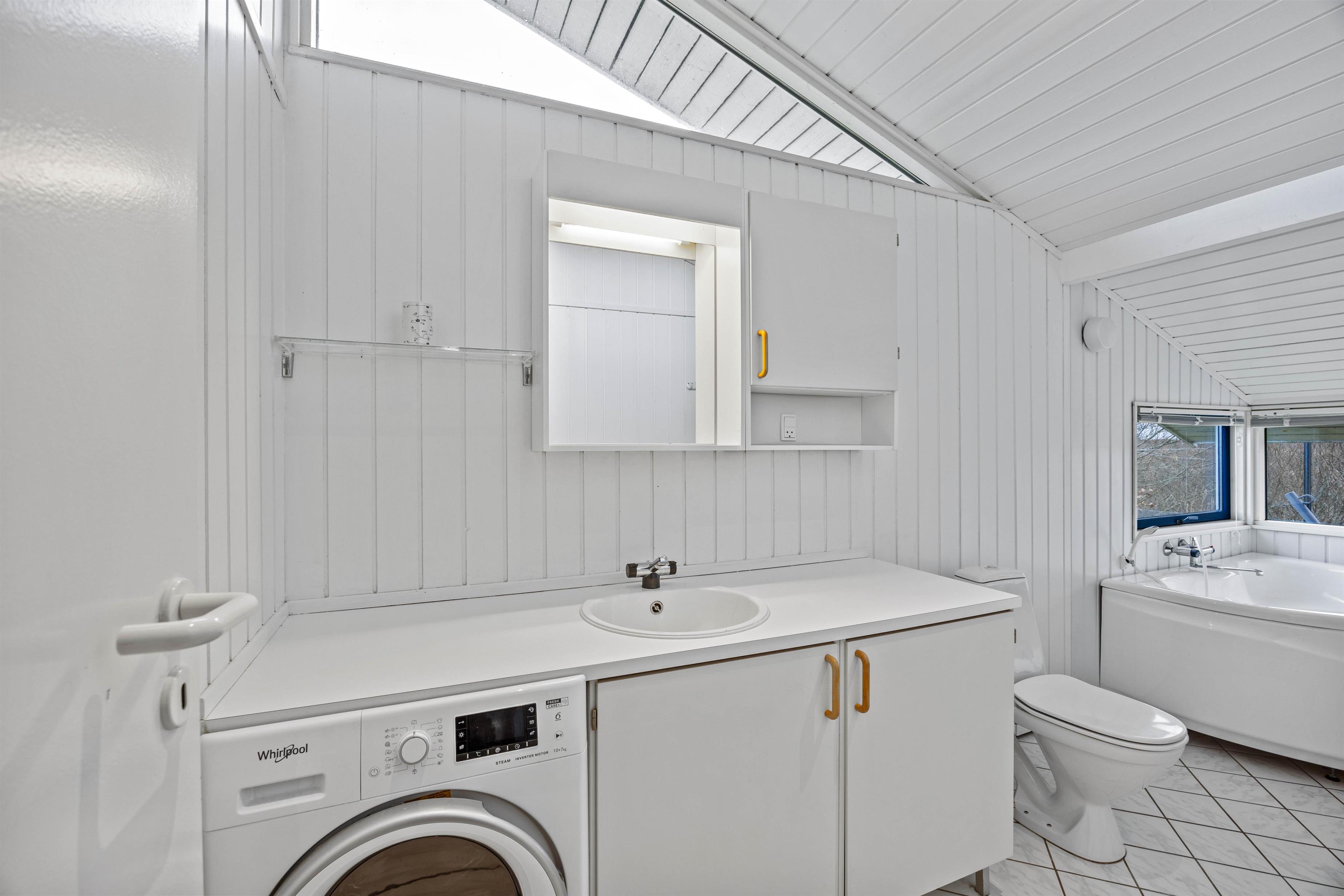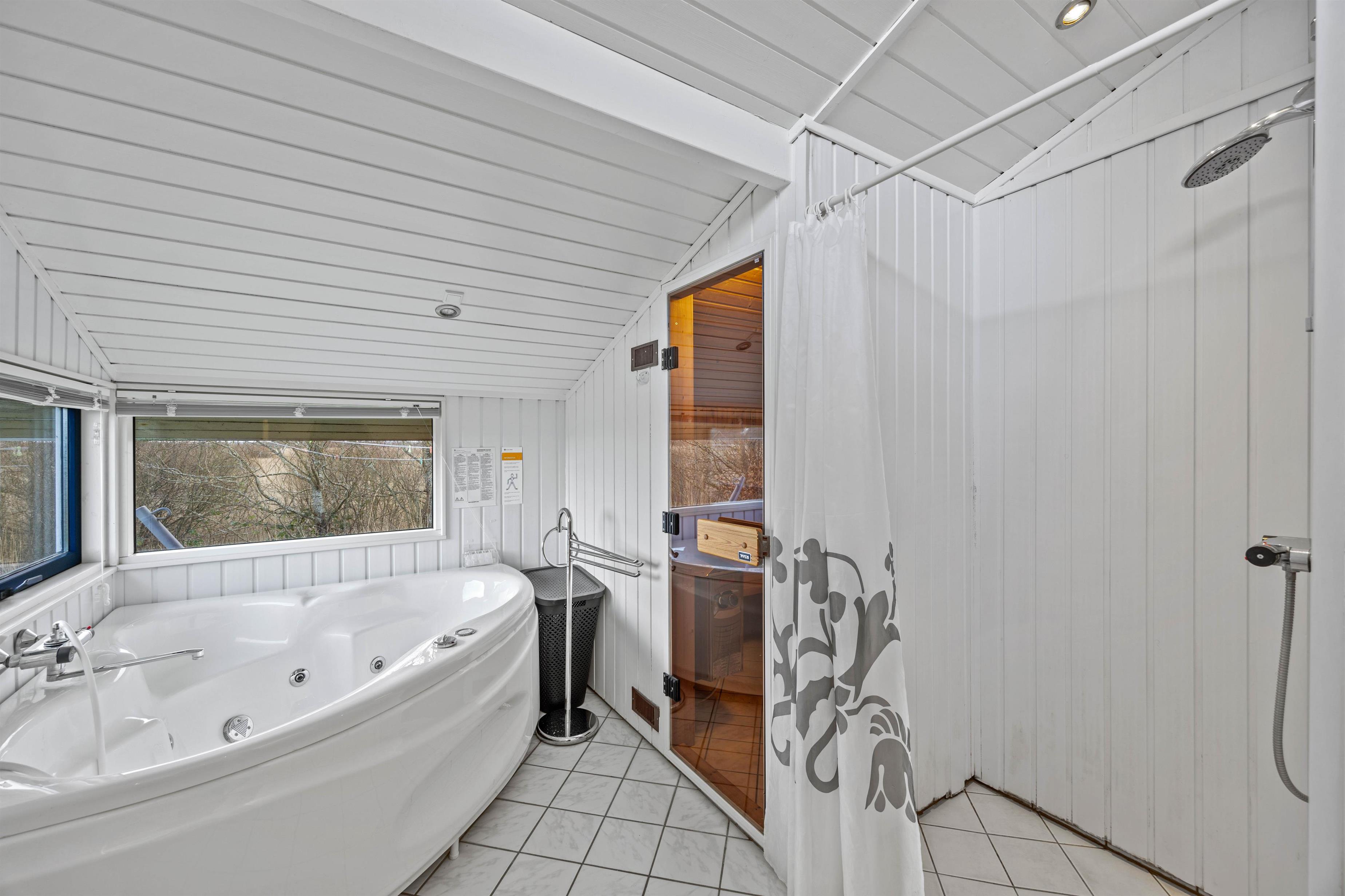 Efter en frisk gåtur langs Vesterhavet, der ligger 700 meter herfra, kan I nyde varmen i sommerhusets spabad og sauna. Som ekstra komfort er der gulvvarme på badeværelset. Derudover er der et gæstetoilet, så der er god plads til alle. Sommerhuset er desuden udstyret med vaskemaskine og tørretumbler, så I kan holde styr på ferievasketøjet.