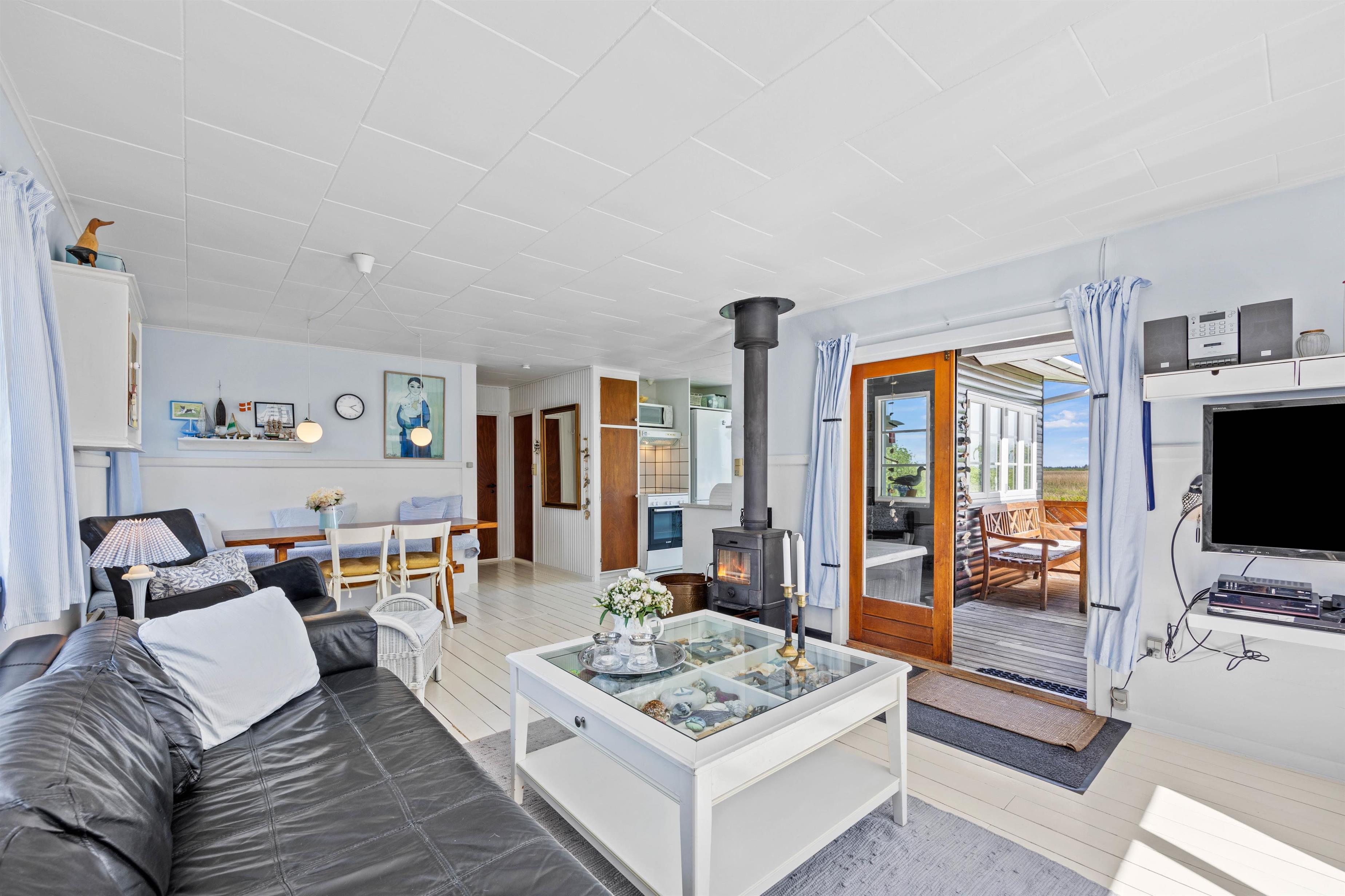 Sommerhuset på Lakolk 217 har plads til fire gæster. Et hyggeligt lille sommerhus perfekt til parret eller den lille familie. Sommerhuset har et lyst, åbent køkken/alrum, som er ideelt til familieaktiviteter. Her kan I sammen lave mad, spille brætspil og meget mere! Brændeovnen sørger for hyggelig varme på de køligere dage. Fra køkkenet er der udgang til den glasinddækkede veranda med et hyggeligt siddeområde og en vidunderlig udsigt over det omkringliggende område.