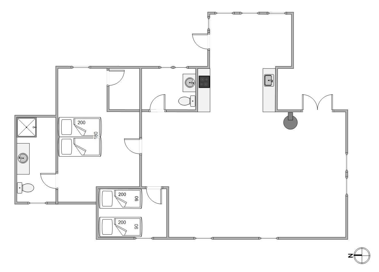 Der er to soveværelser, hvoraf det ene er indrette med 1 dobbeltseng, og den anden er indrettet med 2 enkeltsenge. Badeværelset med bruser og gulvvarme, finder I i forlængelse af det ene soveværelse og gæstetoiletet finder i ved siden af køkkenet. Sommerhuset opvarmes med en energibesparende varmepumpe, som bidrager til et behageligt indeklima.