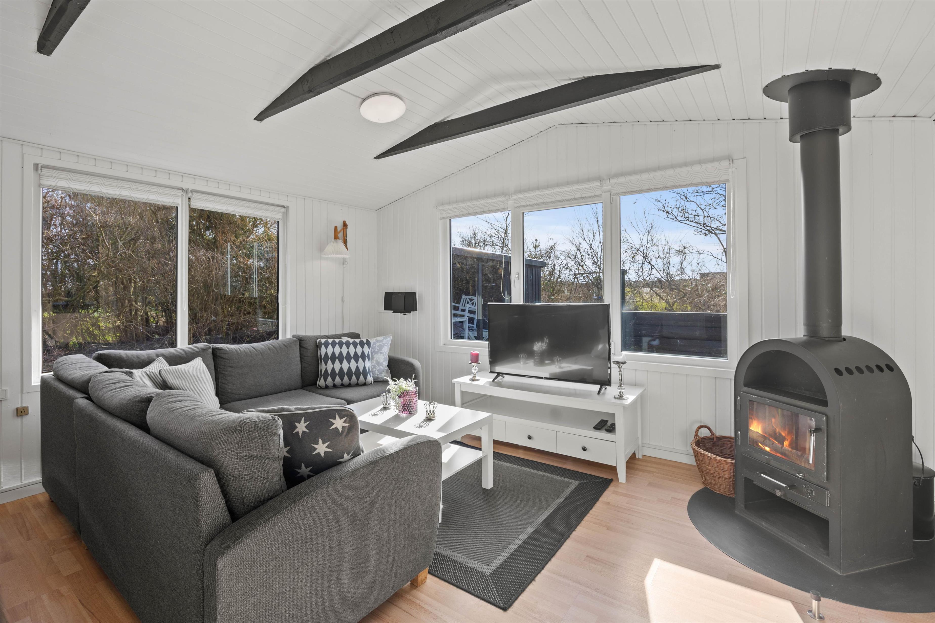 Efter en oplevelsesrig dag kan I slappe af ved den varme brændeovn eller nyde den behagelige temperatur fra varmepumpen. Der er også en vaskemaskine til rådighed, så jeres ophold bliver endnu mere bekvemt.