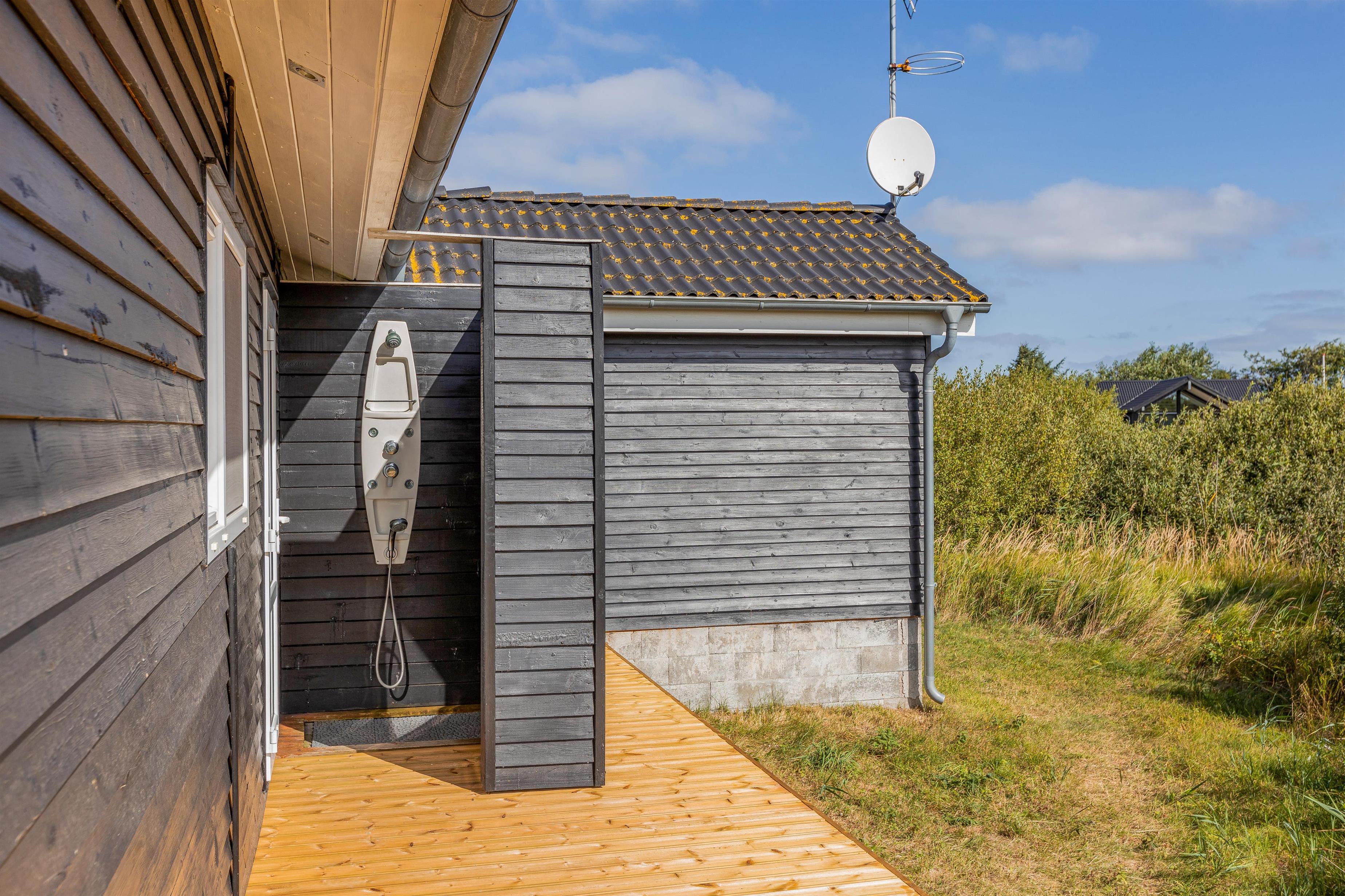 Når solen står højt på himlen, kan I finde et hyggeligt sted på sommerhusets terrasse. De komfortable havemøbler og liggestole indbyder til afslapning i den friske vesterhavsluft, mens børnene leger på naturgrunden. Der er en gynge og en sandkasse til børnene.