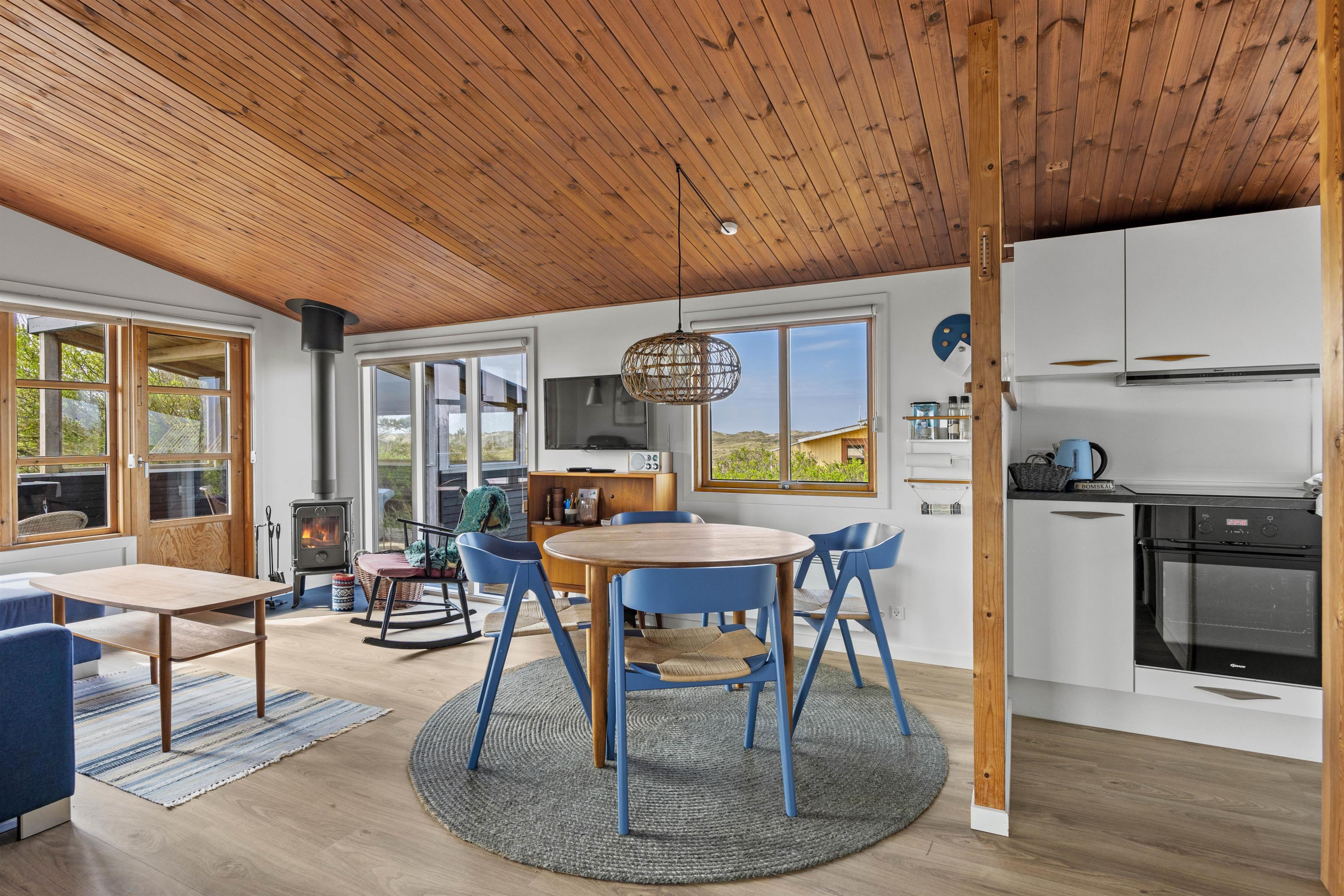 Køkkenalrummet er det perfekte samlingspunkt. Sammen kan I tilberede et dejligt måltid i køkkenet, om spisebordet kan I hygge jer omkring maden eller med gode brætspil, mens sofaen inviterer til afslapning. Her kan I flade ud, læse en god bog eller putte jer med en god film på de køligere efterårsaftner med den knitrende brændeovn i baggrunden. Nyd roen og et afbræk fra hverdagen.