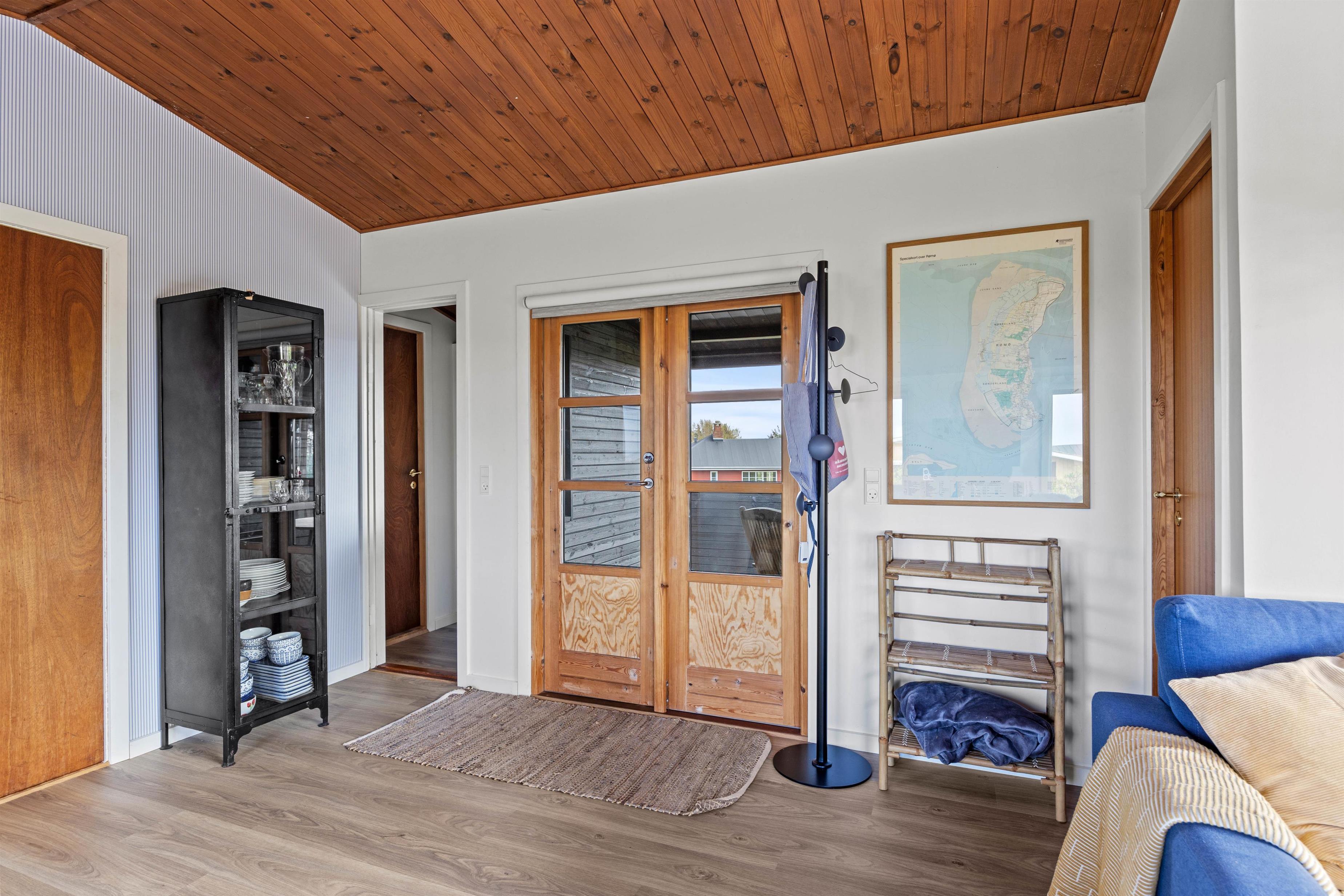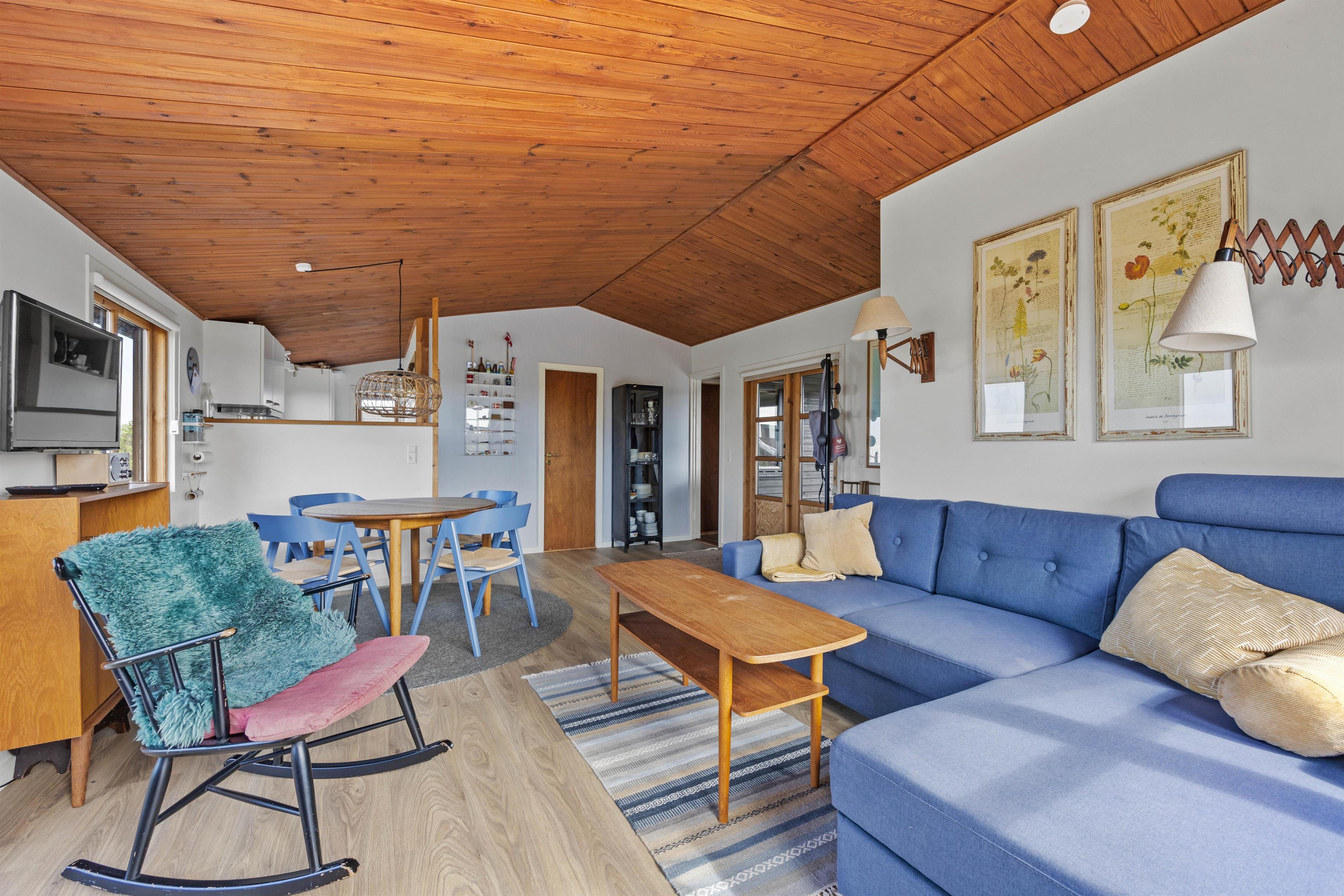 Når I har parkeret bilen nedenfor sommerhuset, følger trappen jer frem til indgangen. Indenfor byder de varme trænuancer og rolige farver jer velkommen! Her er en rar atmosfære, hvor det oser af ægte dansk sommerhusferie. Sommerhuset på 48m2 har to fine soveværelser, et badeværelse - samt et dejligt køkkenalrum.