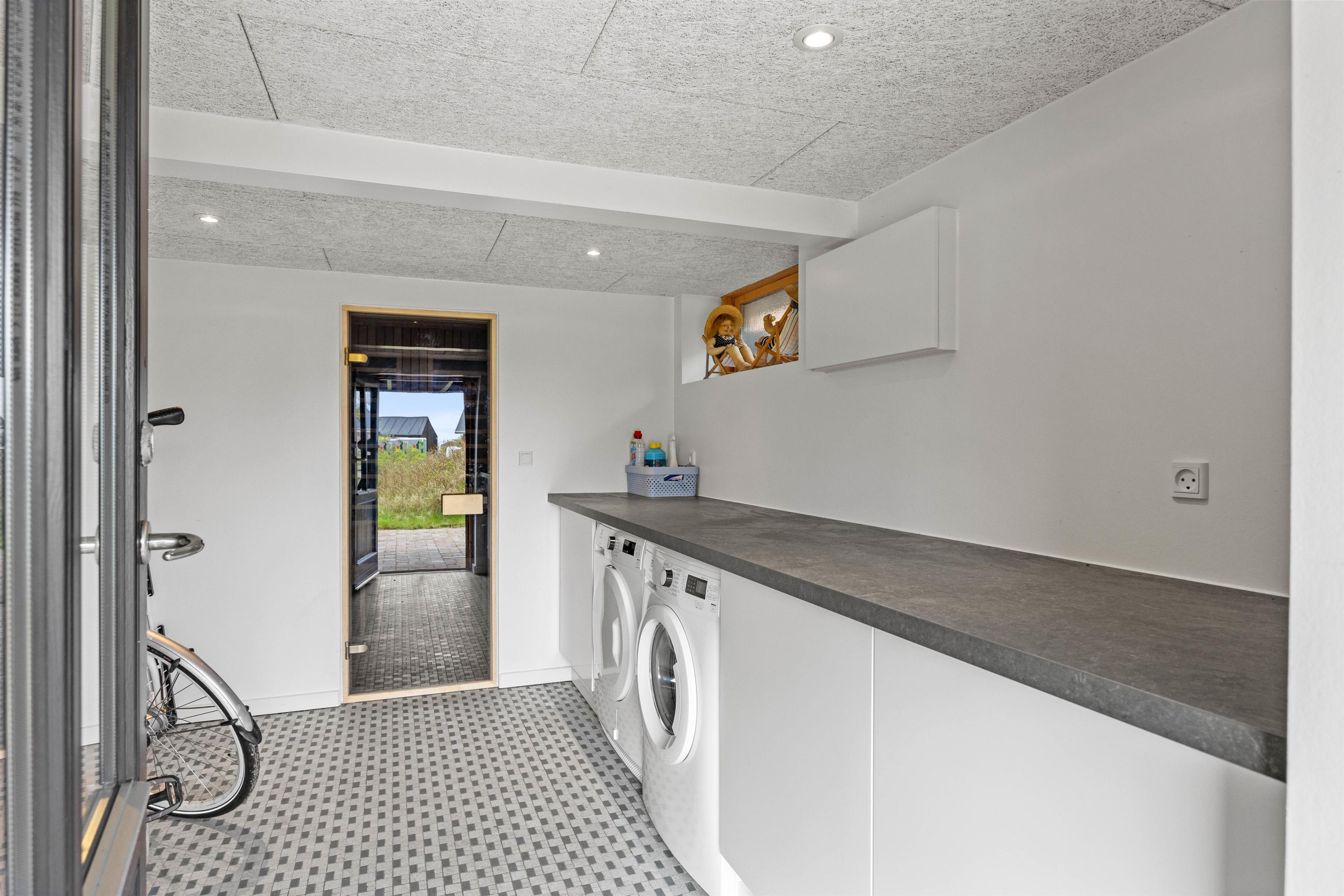 I underetagen er der en lækker sauna og et vaskerum med vaskemaskine og tørretumbler.