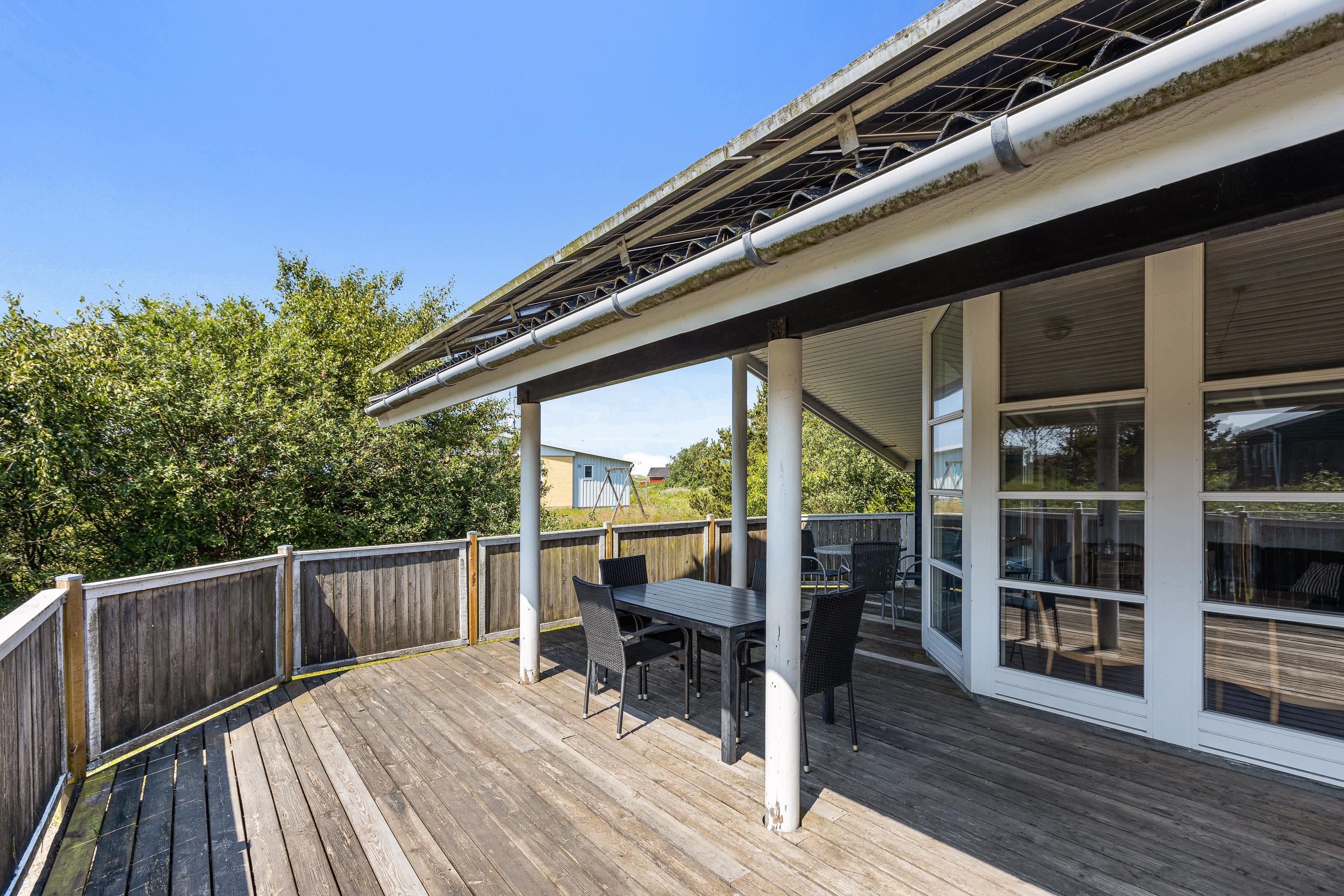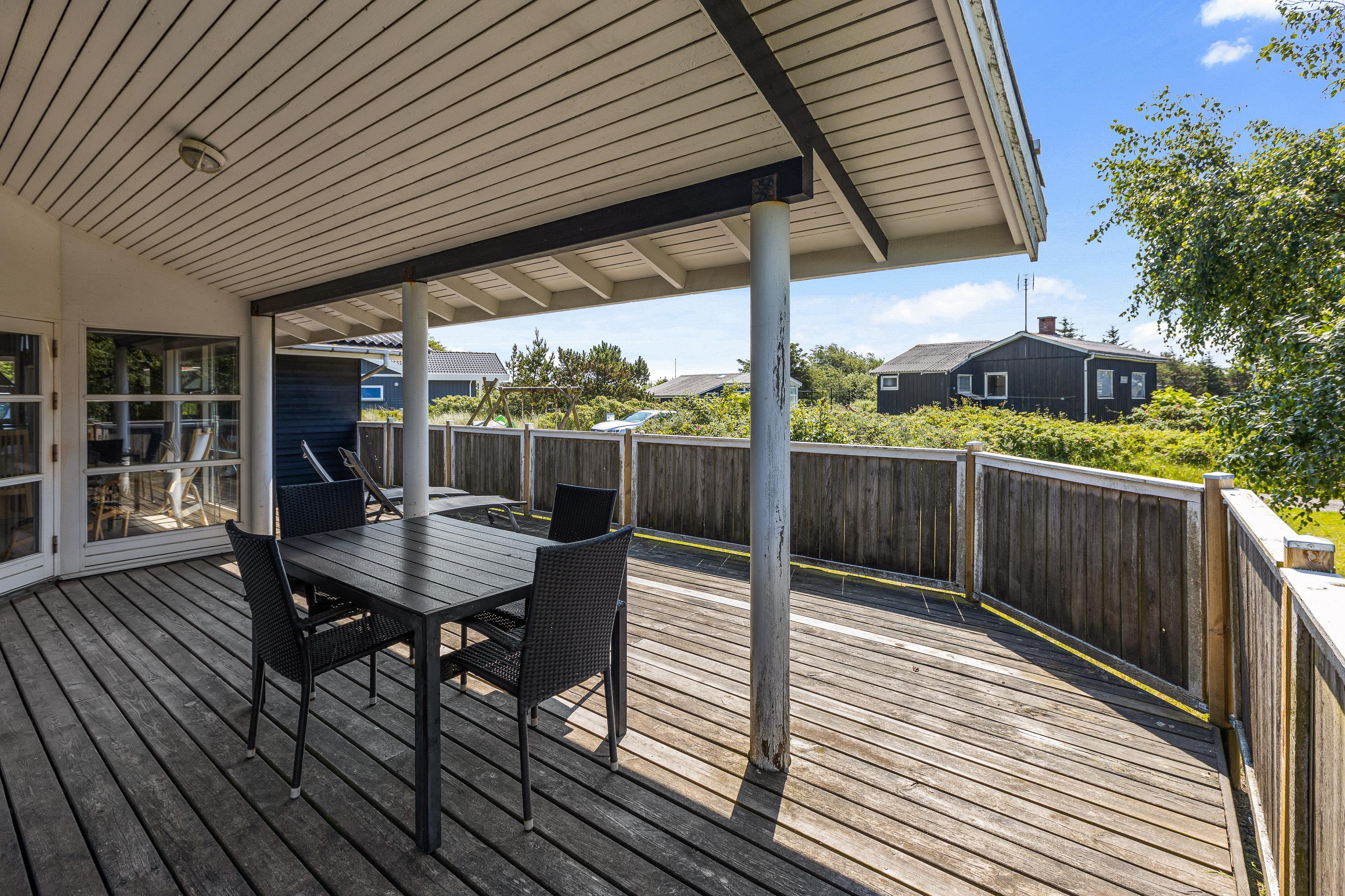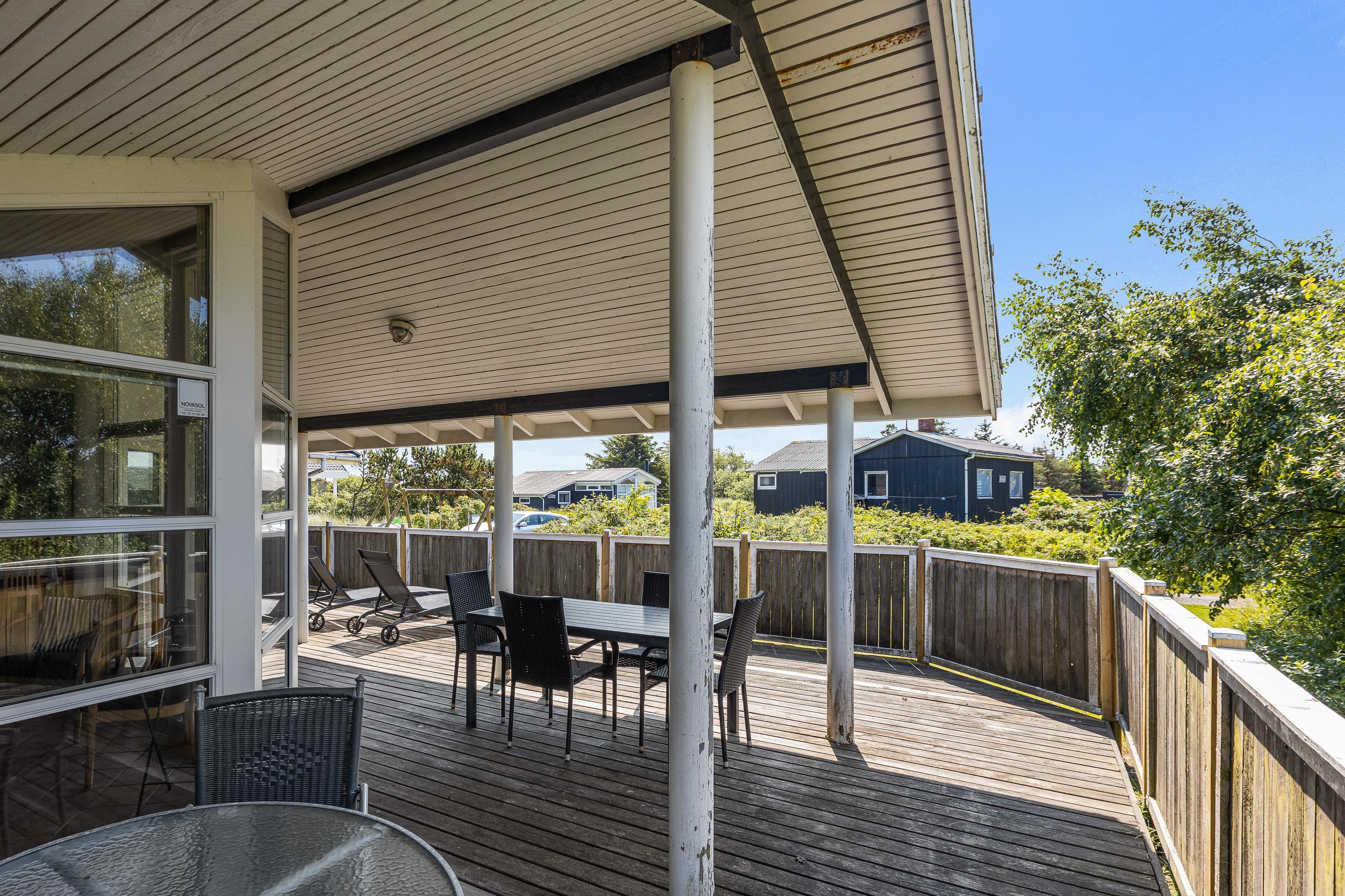 I dette klassiske og traditionelt indrettede sommerhus kan du nyde en dejlig ferie på Rømø med hele familien og eventuelle kæledyr, idet sommerhuset rummer 3 soverum til 6 personer. Feriehuset ligger på en dejlig stor naturgrund med plads til leg i både sandkassen, på gyngerne og på rutsjebanen. Samtidig er sommerhuset omsluttet af en stor overdækket og lukket terrasse, så man kan lade hundene gå løst samt sidde afskærmet i læ og nyde aftensmaden lavet på sommerhusets grill.