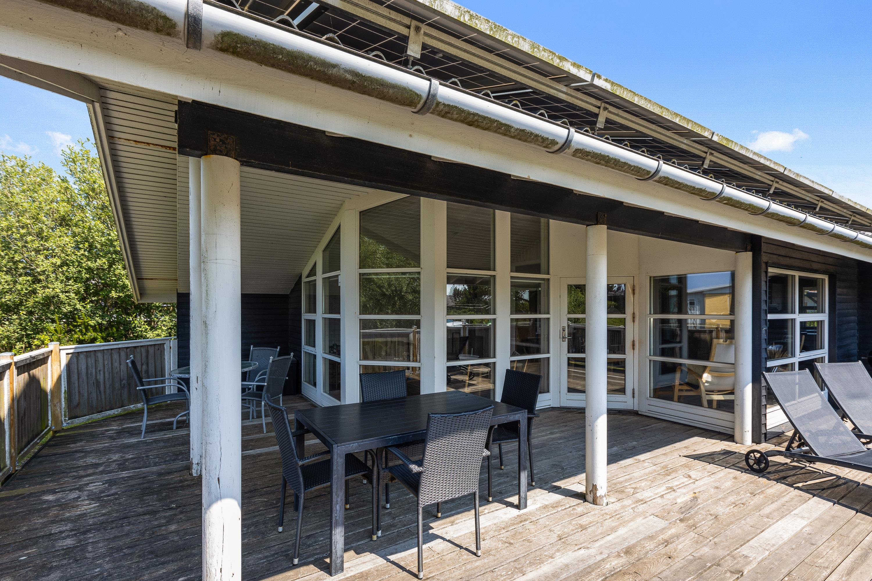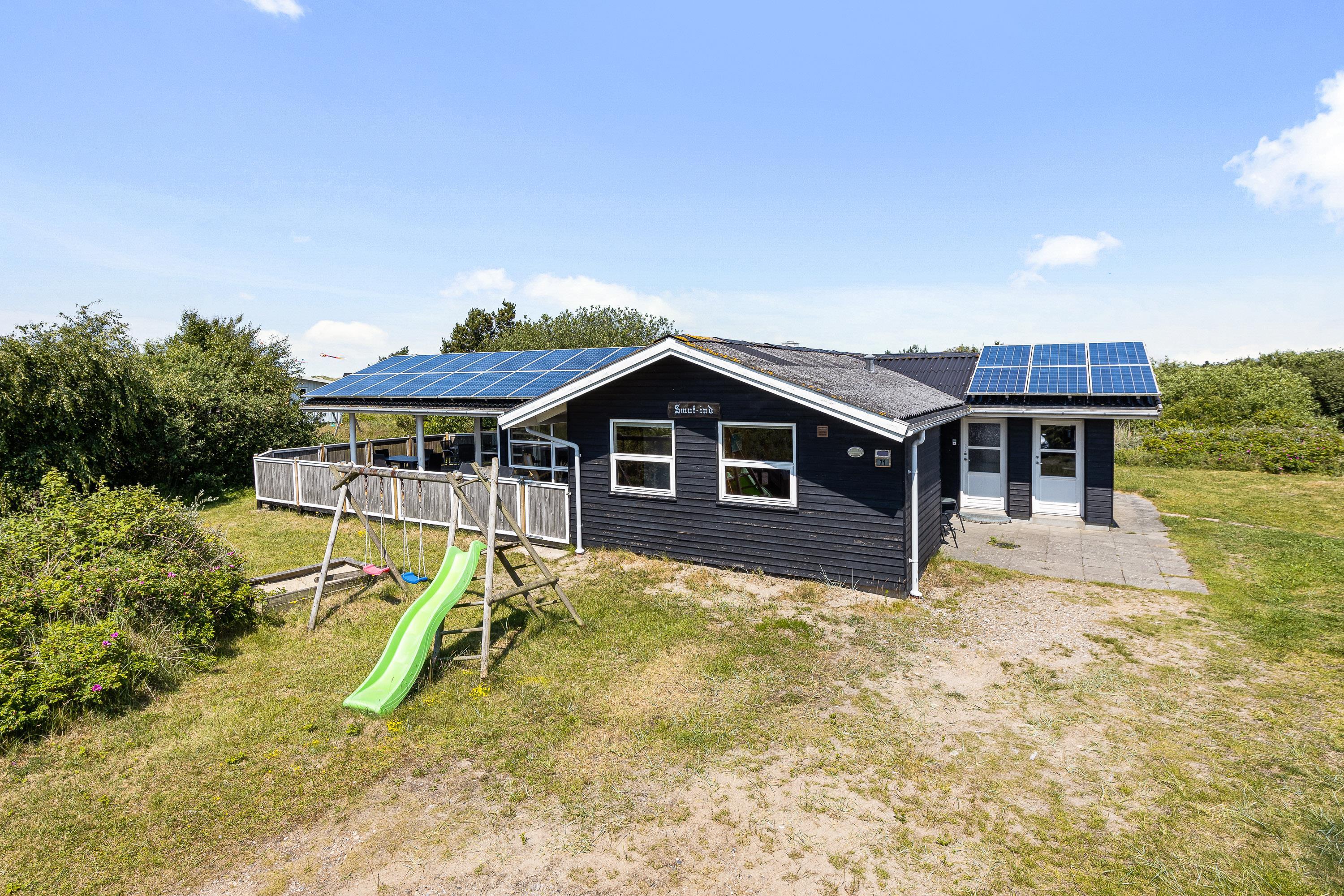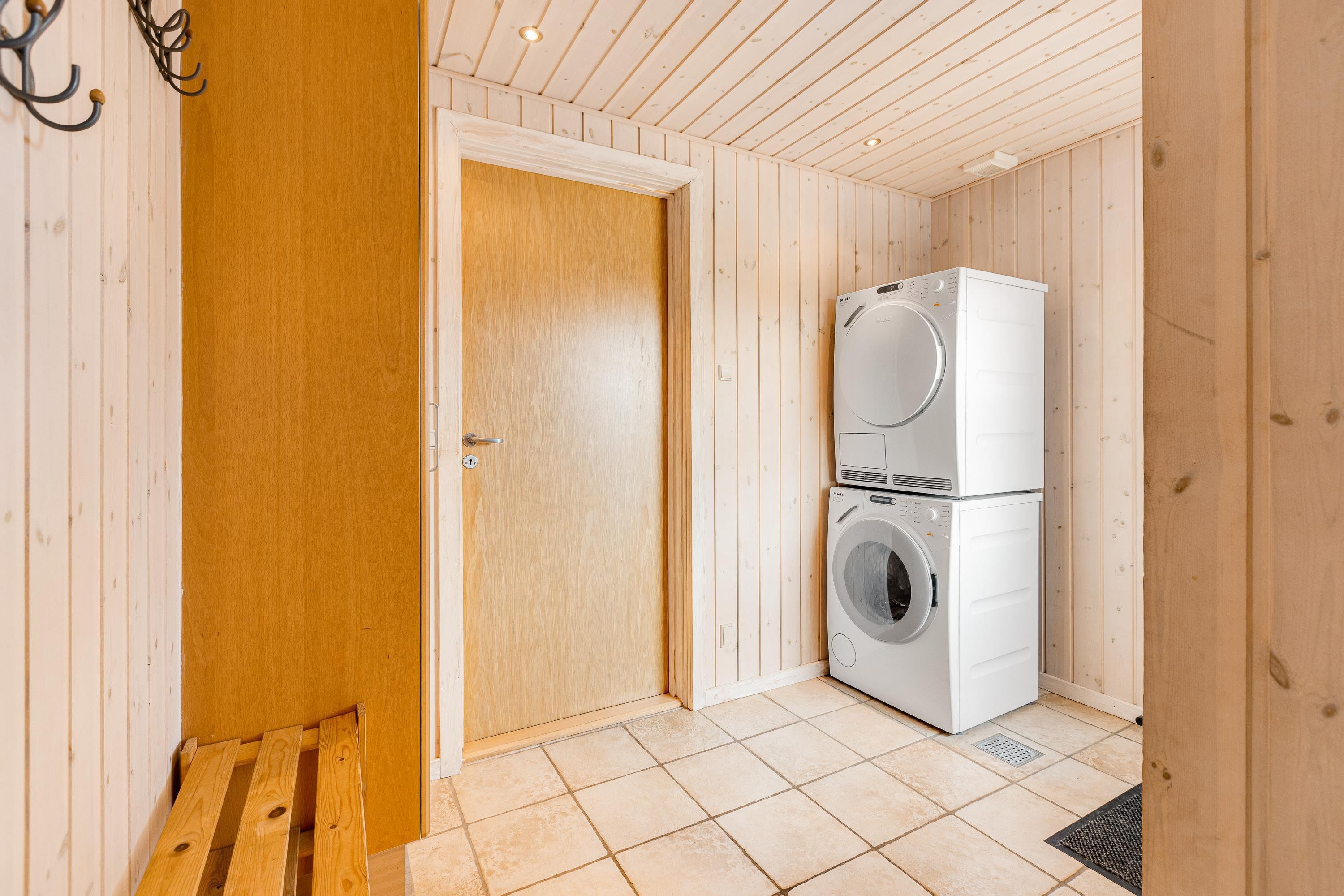 Skulle I ankomme med børn, er det praktisk at huset rummer både en vaskemaskine samt tørretumbler. Derudover er der ved huset et lille legeareal med sandkasse, gynger og rutsjebane, som børnene kan benytte sig af. Mens børnene leger, er det muligt for jer at læne jer tilbage på den overdækkede terrasse med en dejlig kop kaffe og en læsebog.