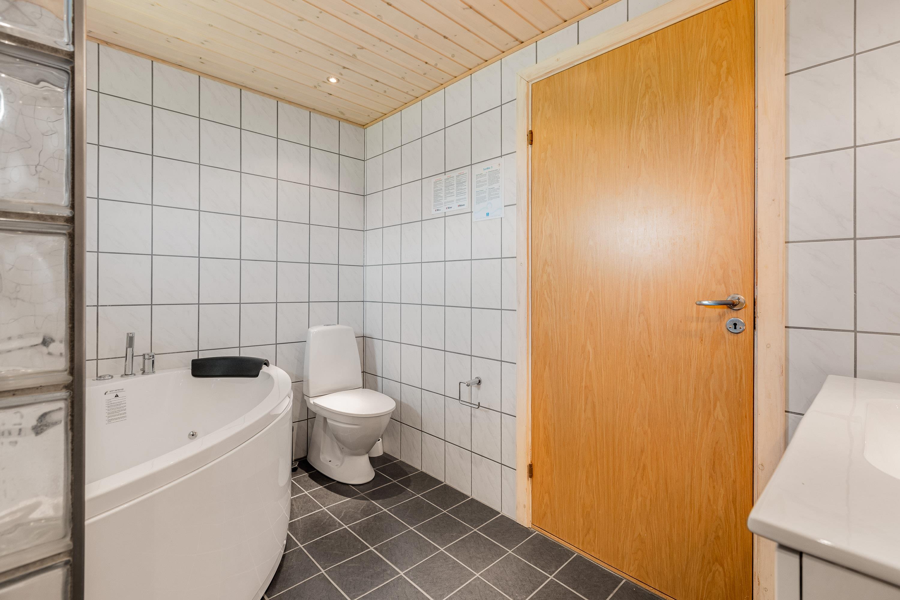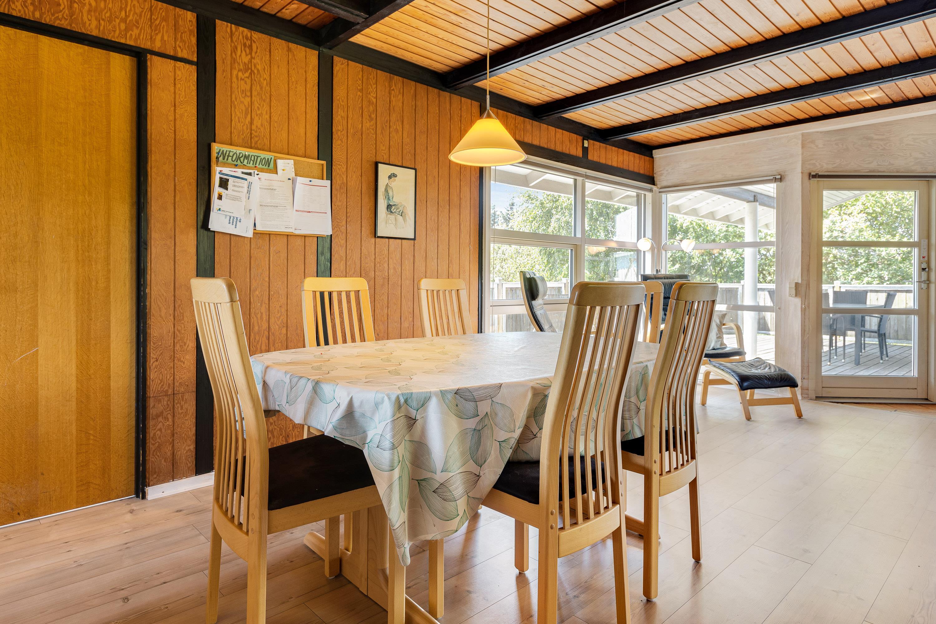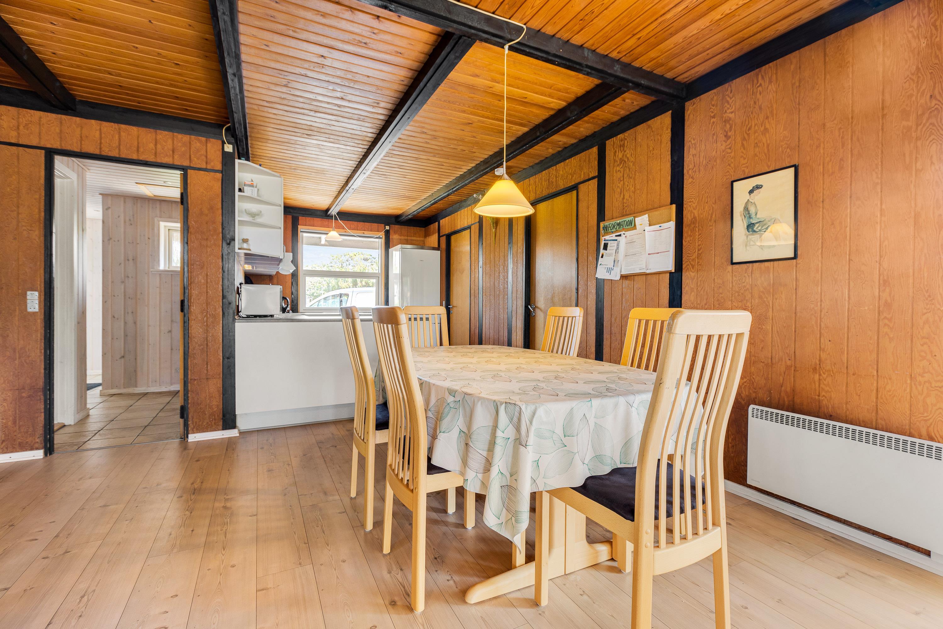 Indvendigt finder du eksempel på et traditionelt og klassisk indrettet sommerhus, som emmer af dansk sommerhusferie. I det store køkkenalrum og stue kan hele familien samles om fælles madlavning, og I kan samtidig hygge jer i udestuen med brændeovnen tændt. Trænger I til afslapning er det også muligt at fylde husets spa og læne sig tilbage deri.