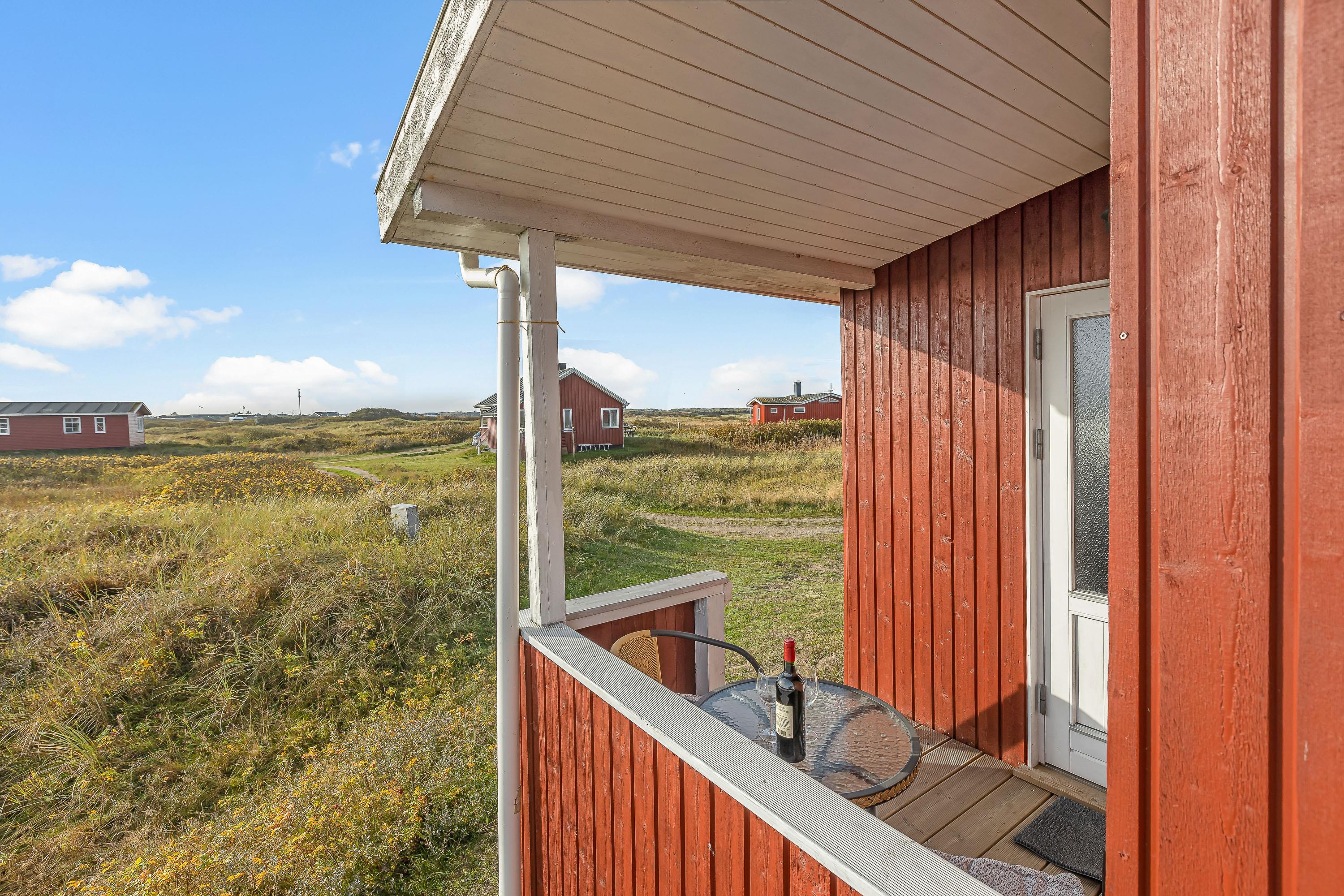 Sommerhuset to terrasser ligger hævet, hvilket giver en flot udsigt udover de åbne vidder i kystlandskabet. Den østvendte terrasse er overdækket, mens den vestvendte er åben, så her er rig mulighed for hyggelige grillaftener og måltider under åben himmel.