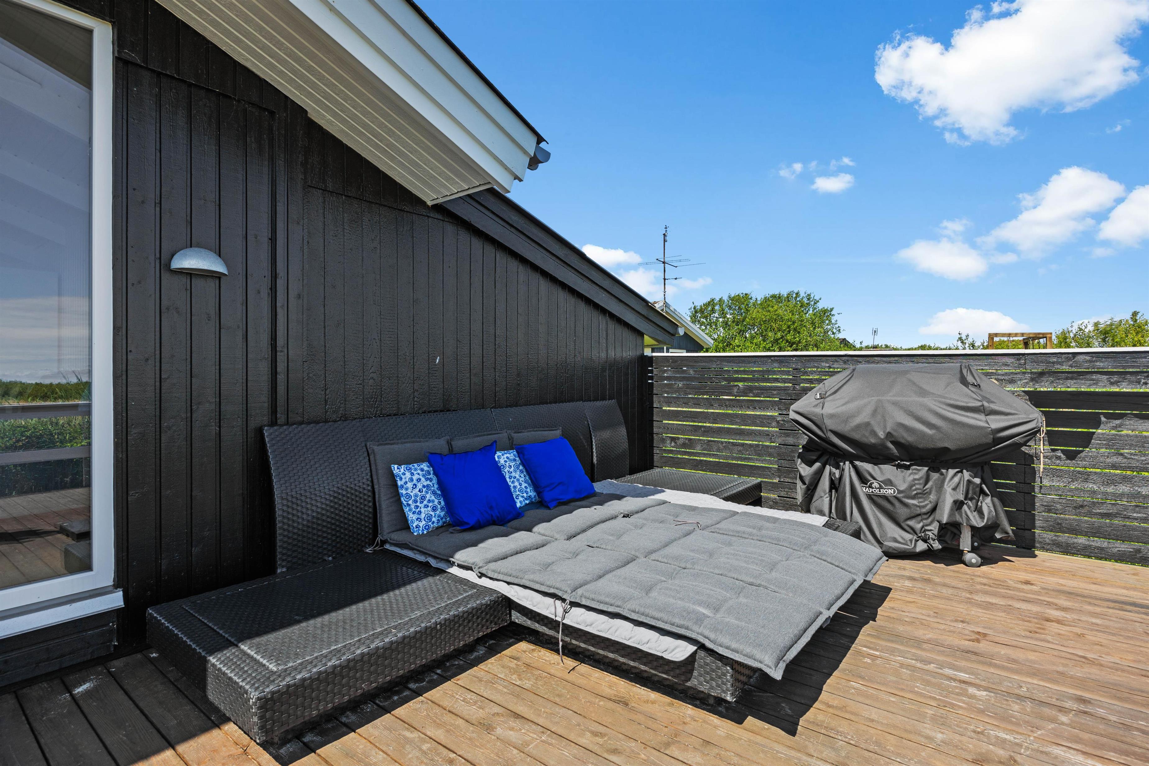 Solskinstimerne kan nydes fra en af de skønne terrasser, hvorfra der er udsigt over de grønne områder. En på forsiden af sommerhuset samt en stor træterrasse i nordøst. Her venter havemøbler og liggestolene på jer. Mens der bliver solet på terrassen, kan de små gynge på gyngerne eller bygge store sandslotte i sandkassen.