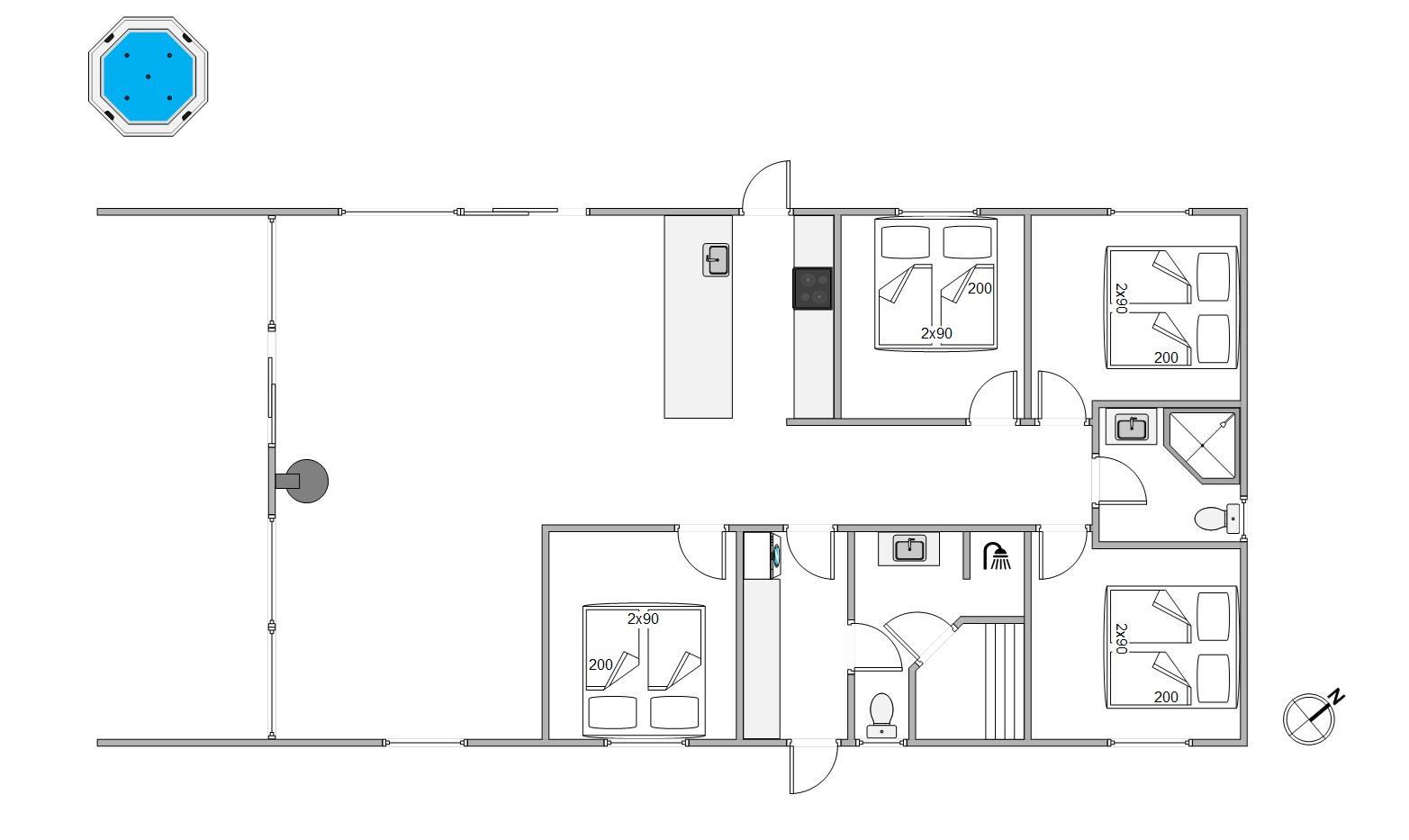 Et af sommerhusets absolutte highlights finder I på terrassen, da der her både er udespa og udebruser. Udebruseren kan benyttes fra april til november.