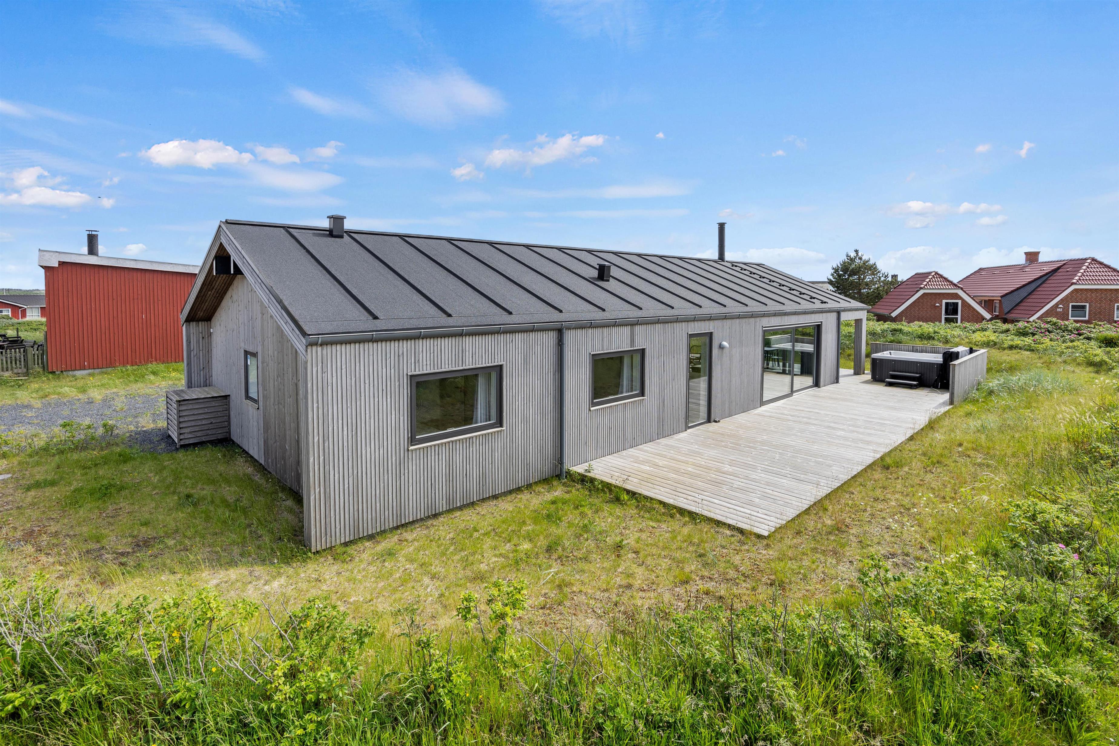 Fra alrummet har I udgang til den store træterrasse, der er delvist overdækket. Her kan I nyde solen på en varm sommerdag, og til aften kan I tilberede et godt stykke kød på sommerhusets grill. Der findes ingen bedre afslutning på feriedagen, end med en lækker grillmiddag for hele familien.