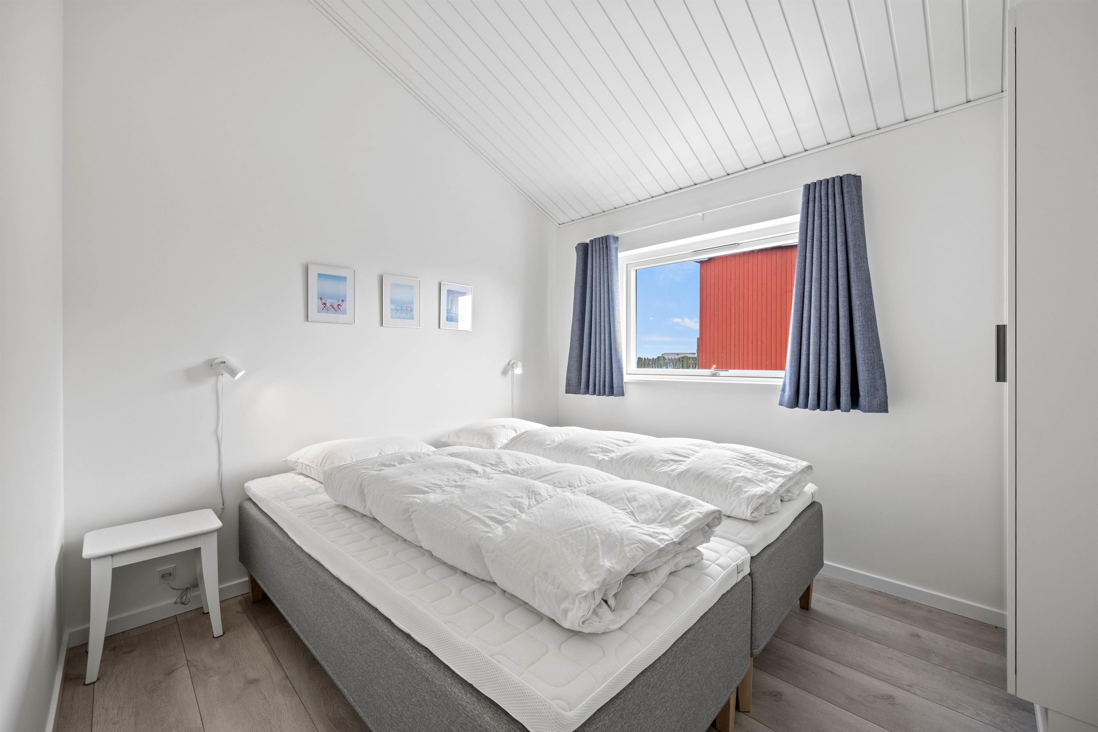 De 8 sovepladser fordeler sig på 4 gode værelser, der alle er indrettet med komfortable, sammensatte enkeltsenge, hvor I kan samle fornyet energi til morgendagens aktiviteter.