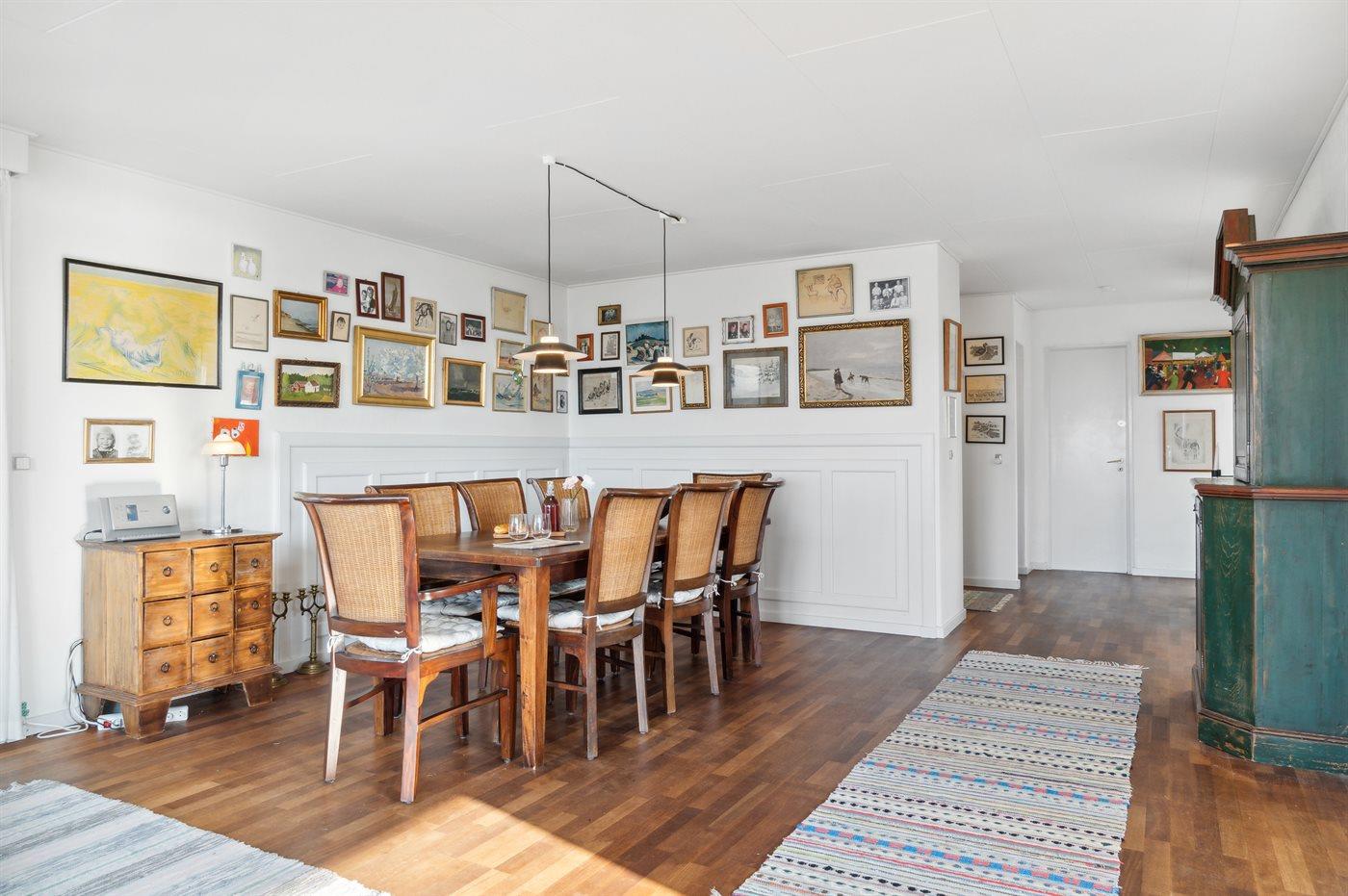 Køkkenet er udstyret med 1 køleskab. Der er 4 keramiske kogeplader, varmluftovn samt opvaskemaskine.
