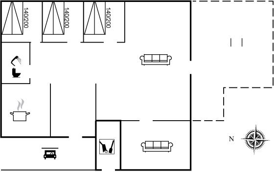 Der er i alt 3 soveværelser. Sovepladserne fordeler sig på: 6 sovepladser i dobbeltsenge.