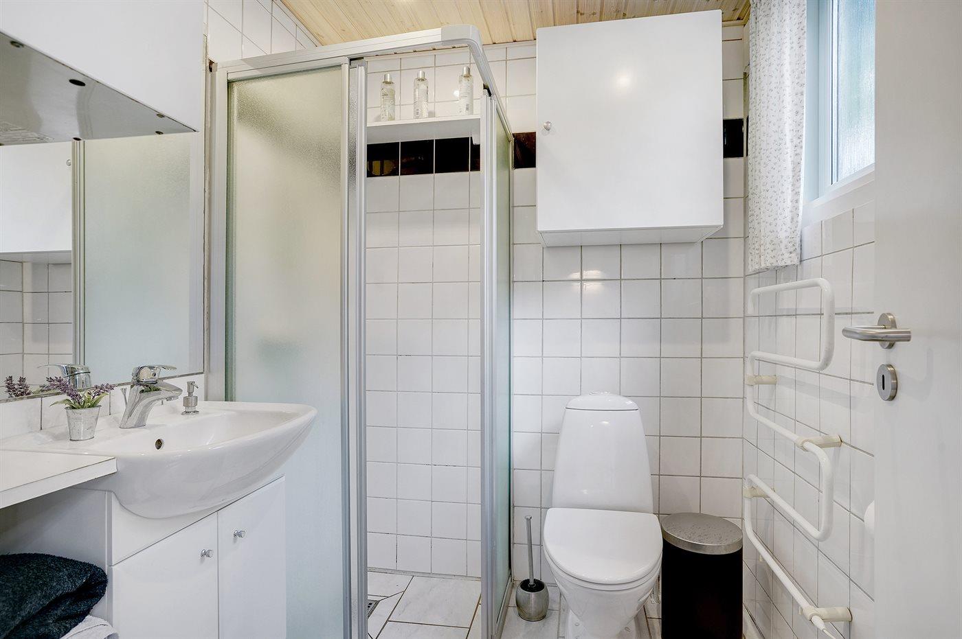 Der er 1 badeværelse med bruseniche og 1 toilet.