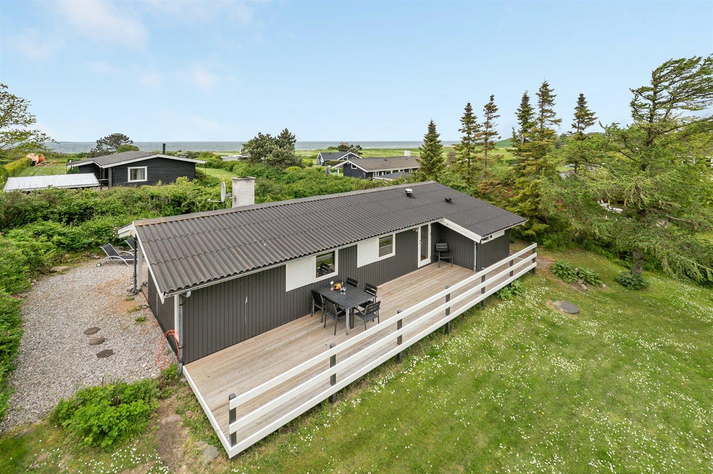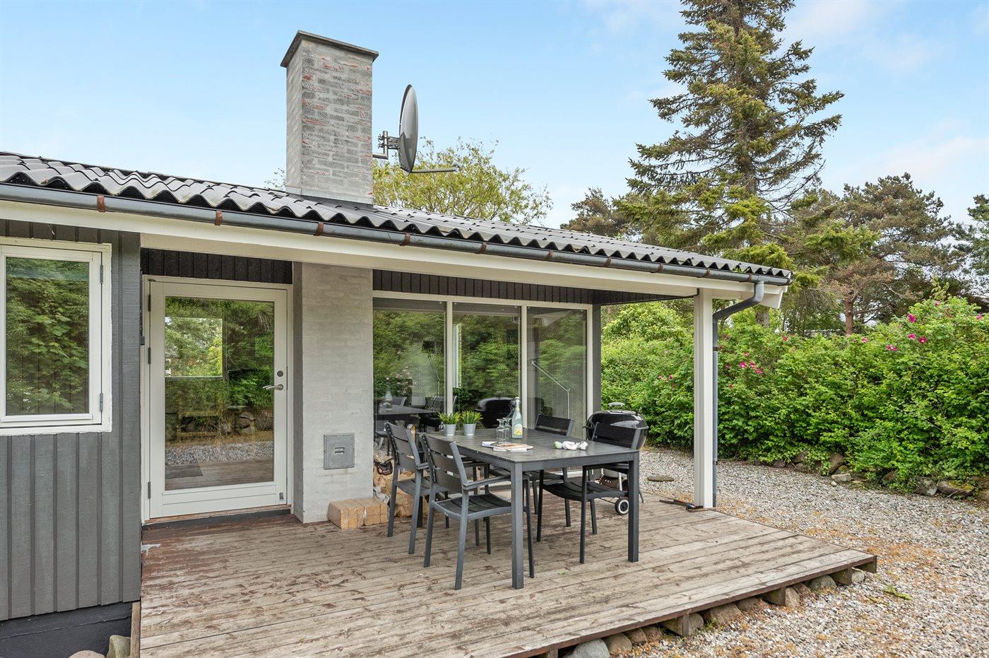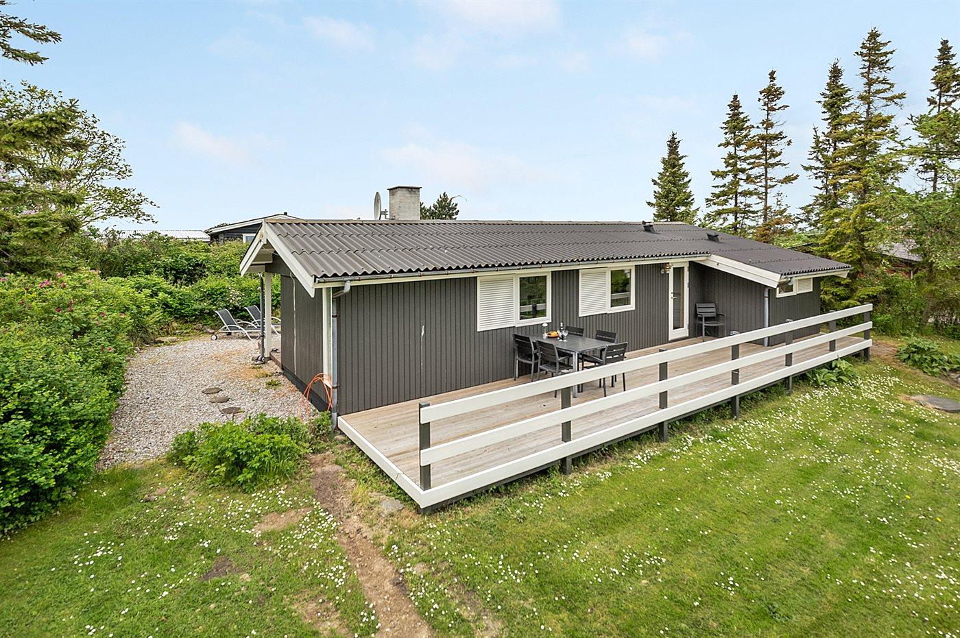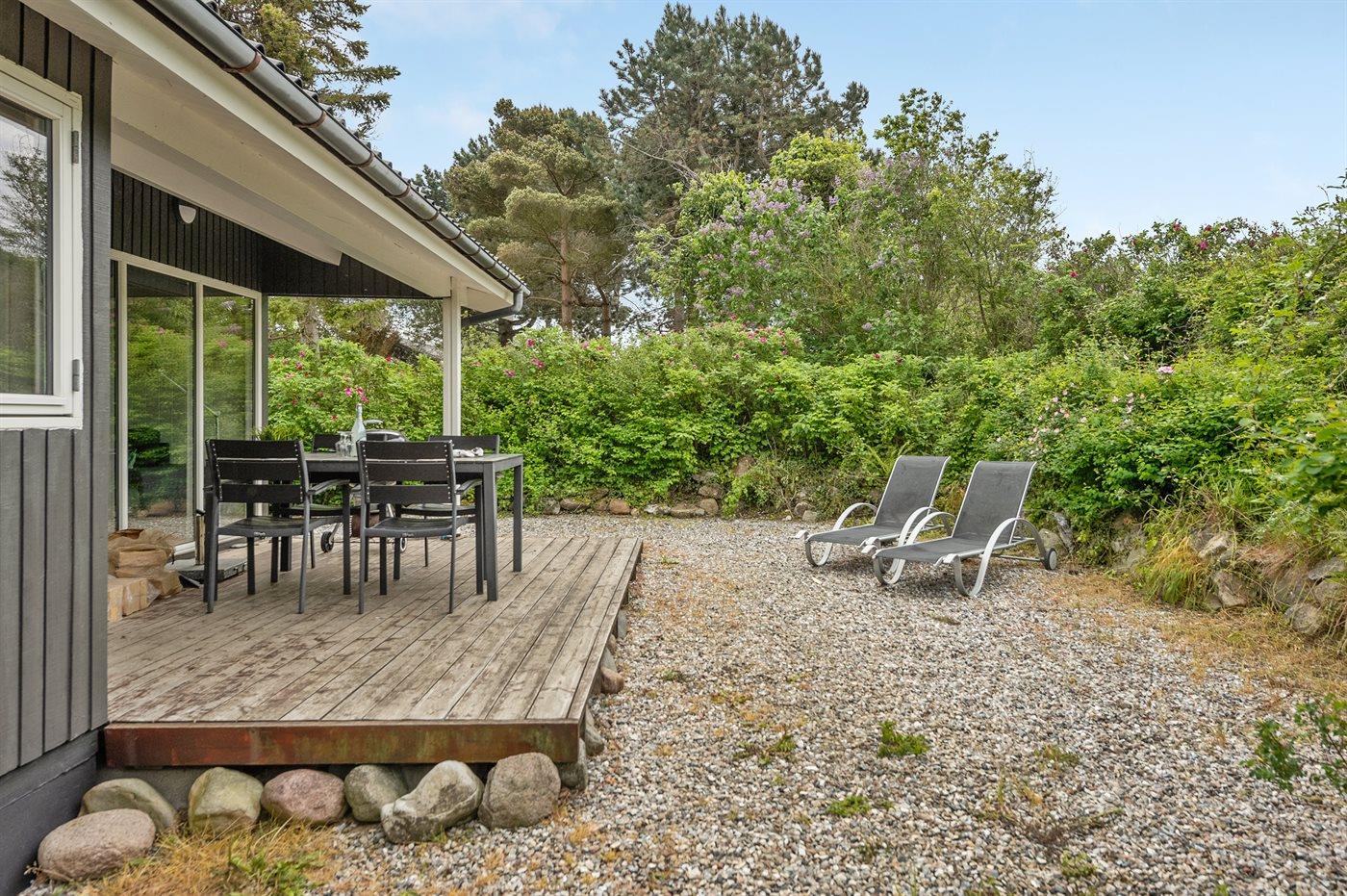 Ferieboligen er beliggende på en 2600 m² stor naturgrund. Der er 140 m til havet. Nærmeste forretning er beliggende i en afstand af 4000 m. Til ferieboligen hører 25 m² terrasseareal. Desuden er der 5 m² overdækket terrasse. Grill til rådighed. Parkering ved ferieboligen.