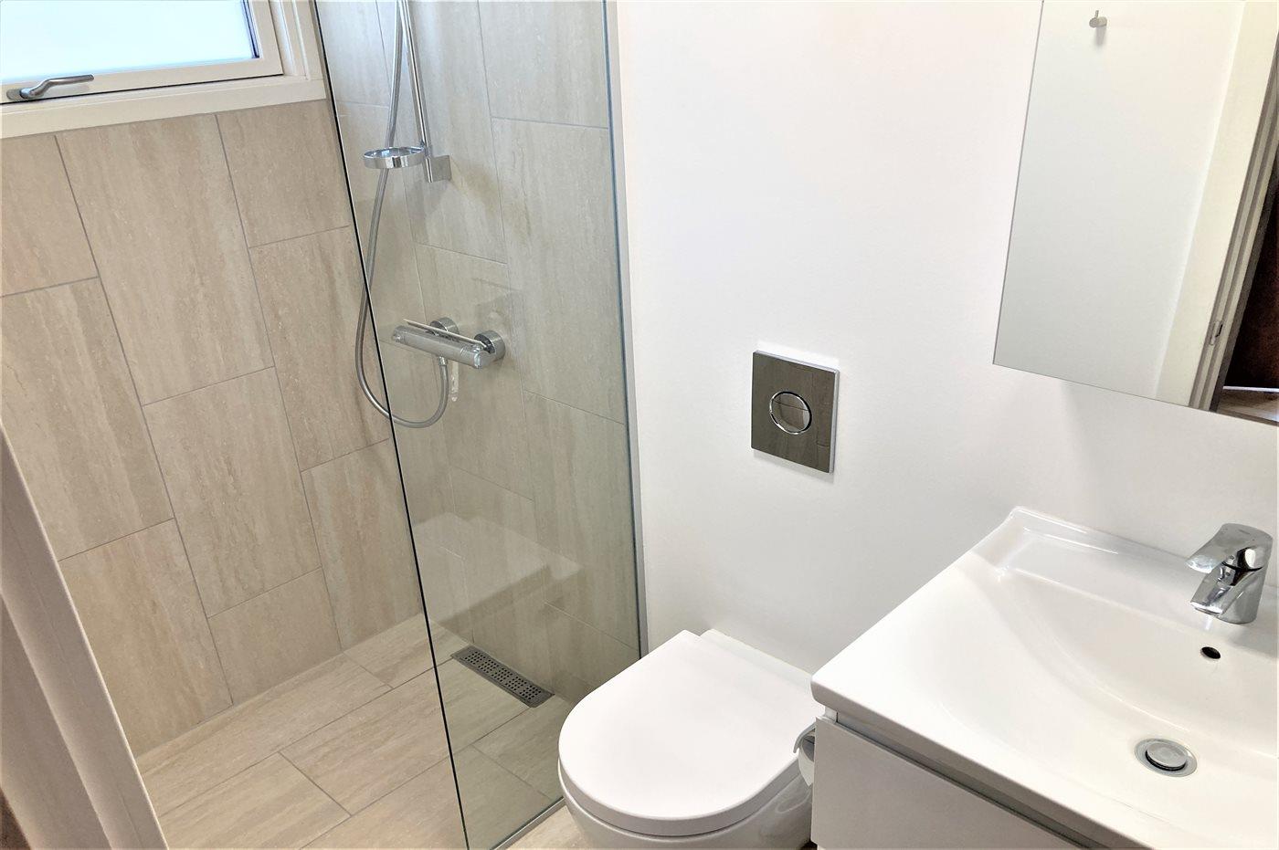 Der er 1 badeværelse med bruseniche og 1 toilet.. Der er gulvvarme på 1 badeværelse.