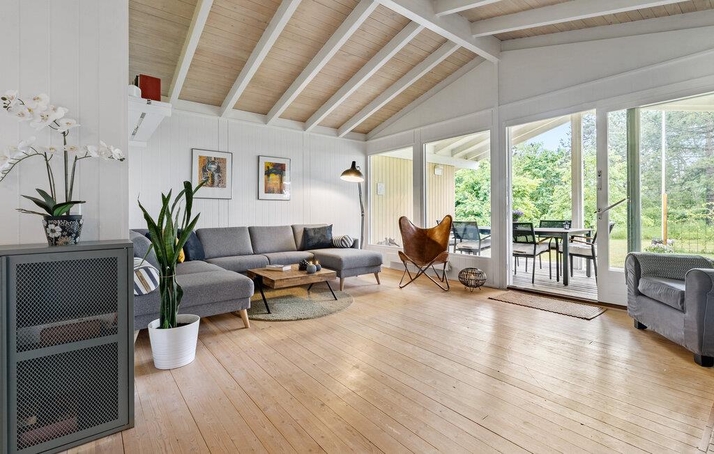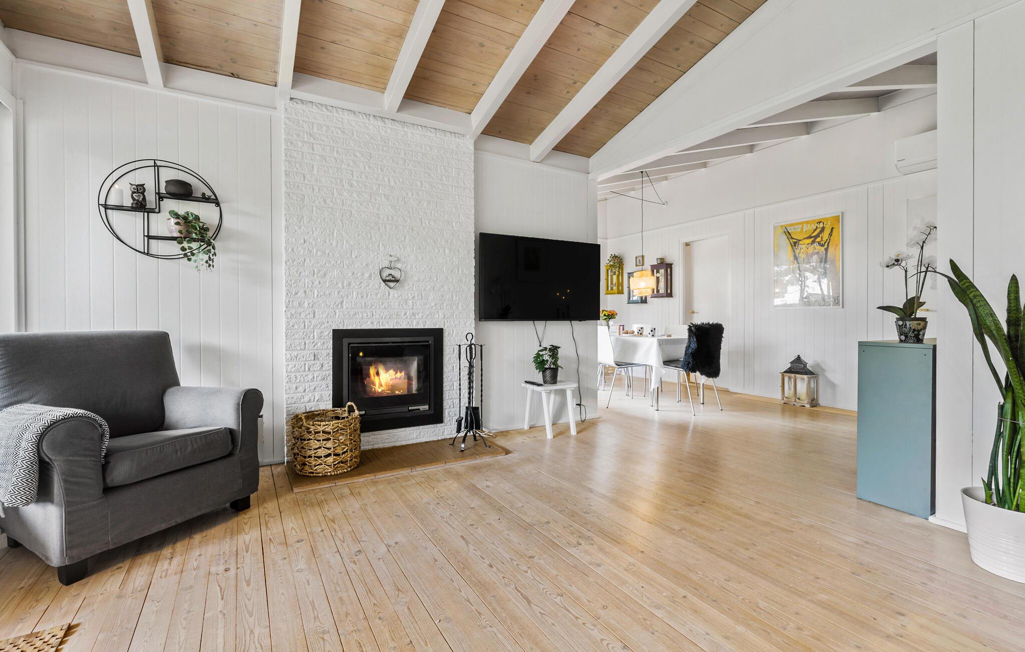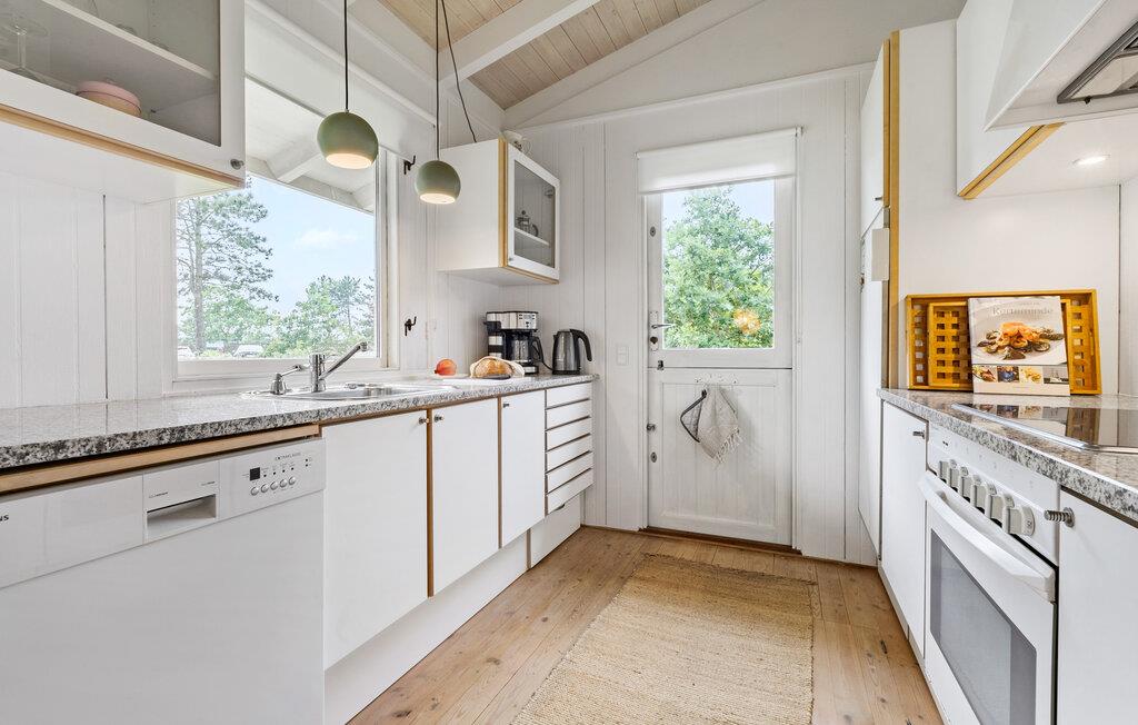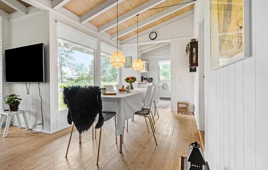 Jeres hus har en forrygende beliggenhed ved kysten, kun nogle få meter fra stranden, og byder på mange moderne faciliteter. Efter en rolig nat vågner I frisk og veludhvilet op og kan nyde en lækker morgenmad sammen med hele familien. Hvis vejret tillader det, kan I spise jeres måltider udenfor på den skønne, overdækkede terrasse. Det rummelige køkken indbyder til fælles madlavning med familien. Den lyse spiseplads og den hyggelige stue med de store vinduer giver jer en fantastisk udsigt til udendørsområdet. Om aftenen kan I slappe af på sofaen eller i de hyggelige lænestole og slutte dagen af med en god bog eller en film. Eller forkæl jer selv med en behagelig tur i saunaen.