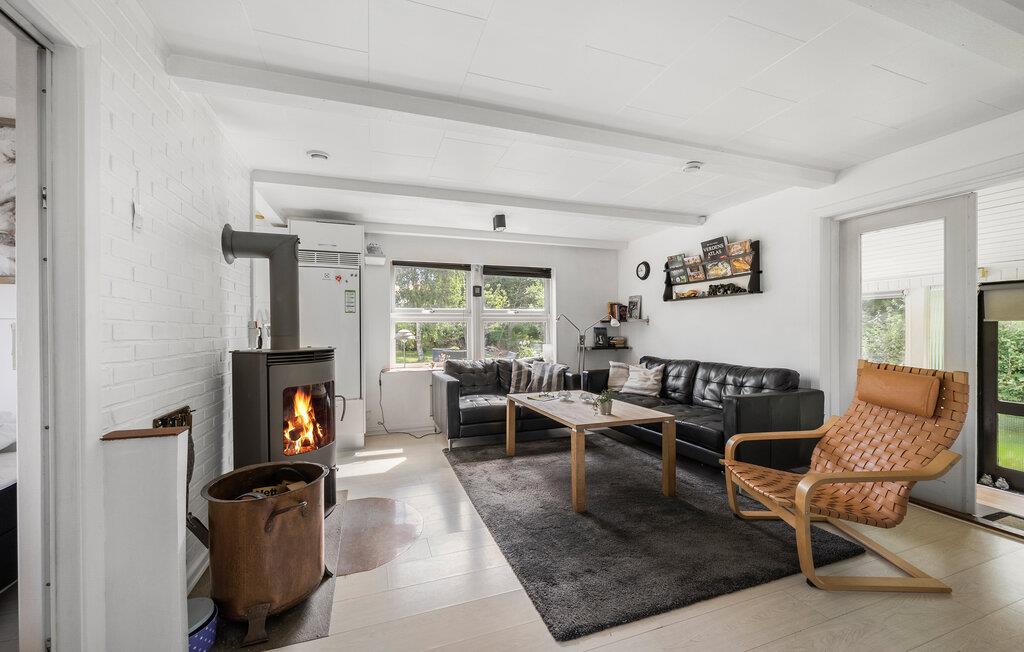 Beliggende i et skønt naturlandskab venter dette hyggelige sommerhus med en stor flot have. I stuen er der plads til afslapning foran brændeovnen med en god bog eller en film på tv’et. Når sulten nærmer sig, kan I lave mad i det veludstyrede køkken, som I kan nyde enten om spisebordet eller udendørs på terrassen. Foruden solen og frisk luft, kan I nyde synet af den velholdte have med frodige træer og buske. Her er det oplagte spot, til at starte morgenen med en kop kaffe i hånden. Om aftenen kan i tænde op i bålfadet og grille skumfiduser, mens I fortæller gode historier over ildet.