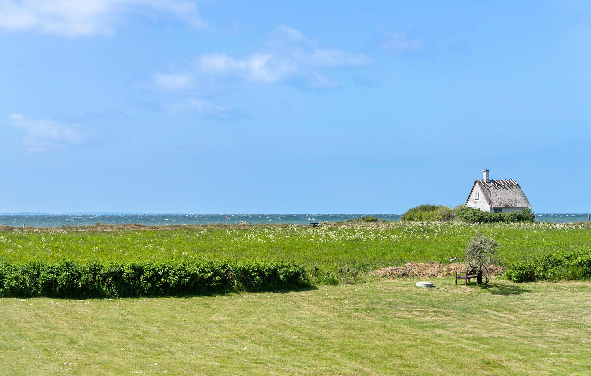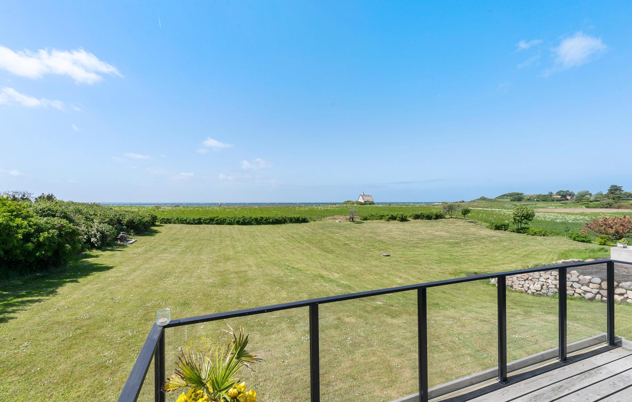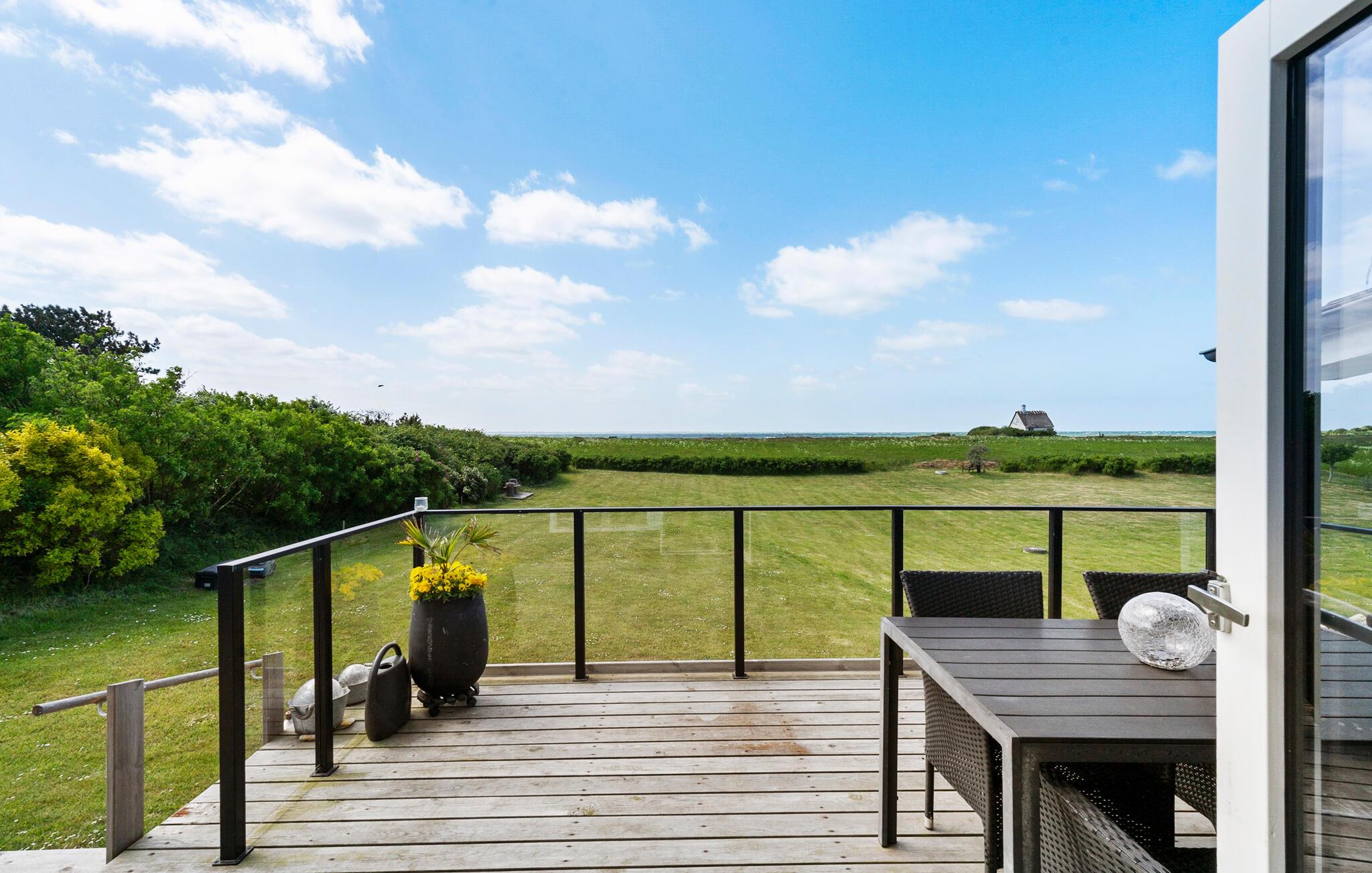 Stilfuldt feriehus med havudsigt og stor terrasse tæt på Langø Strand.