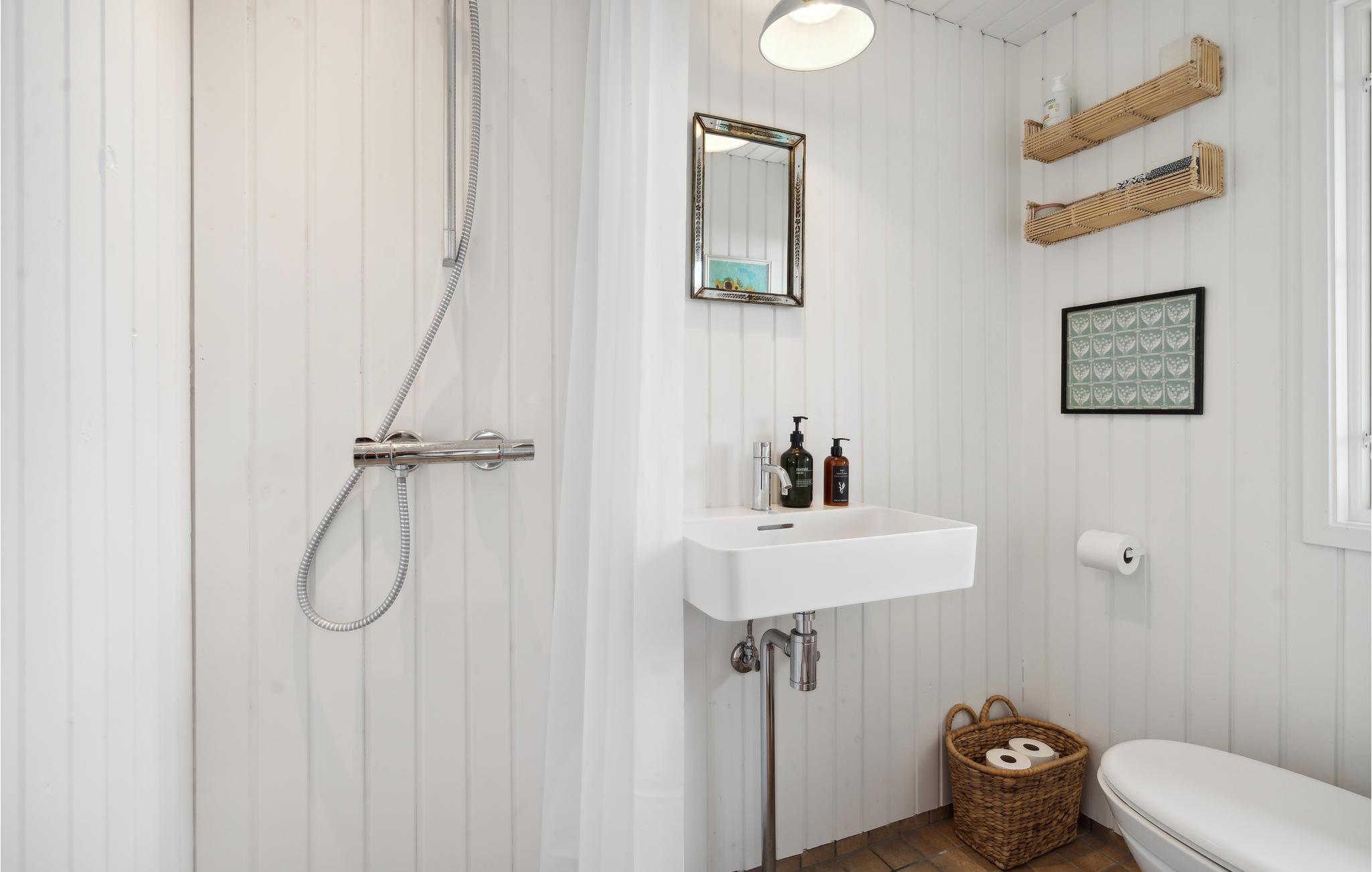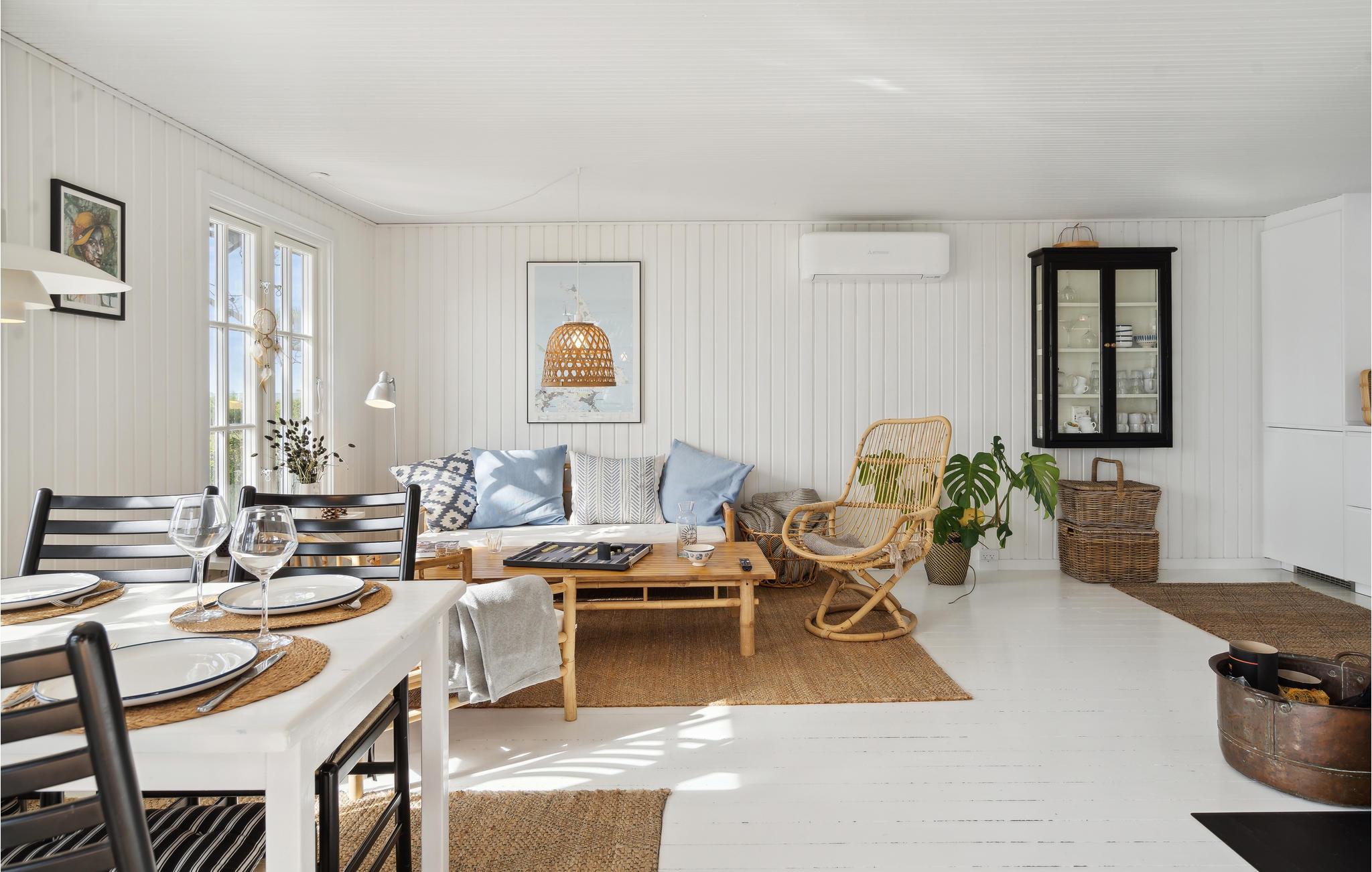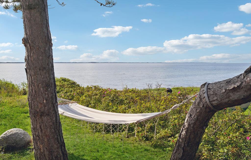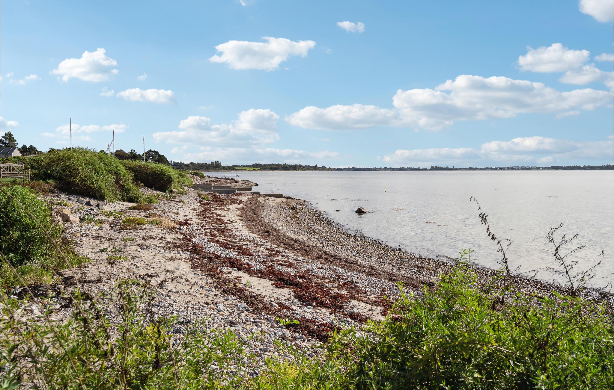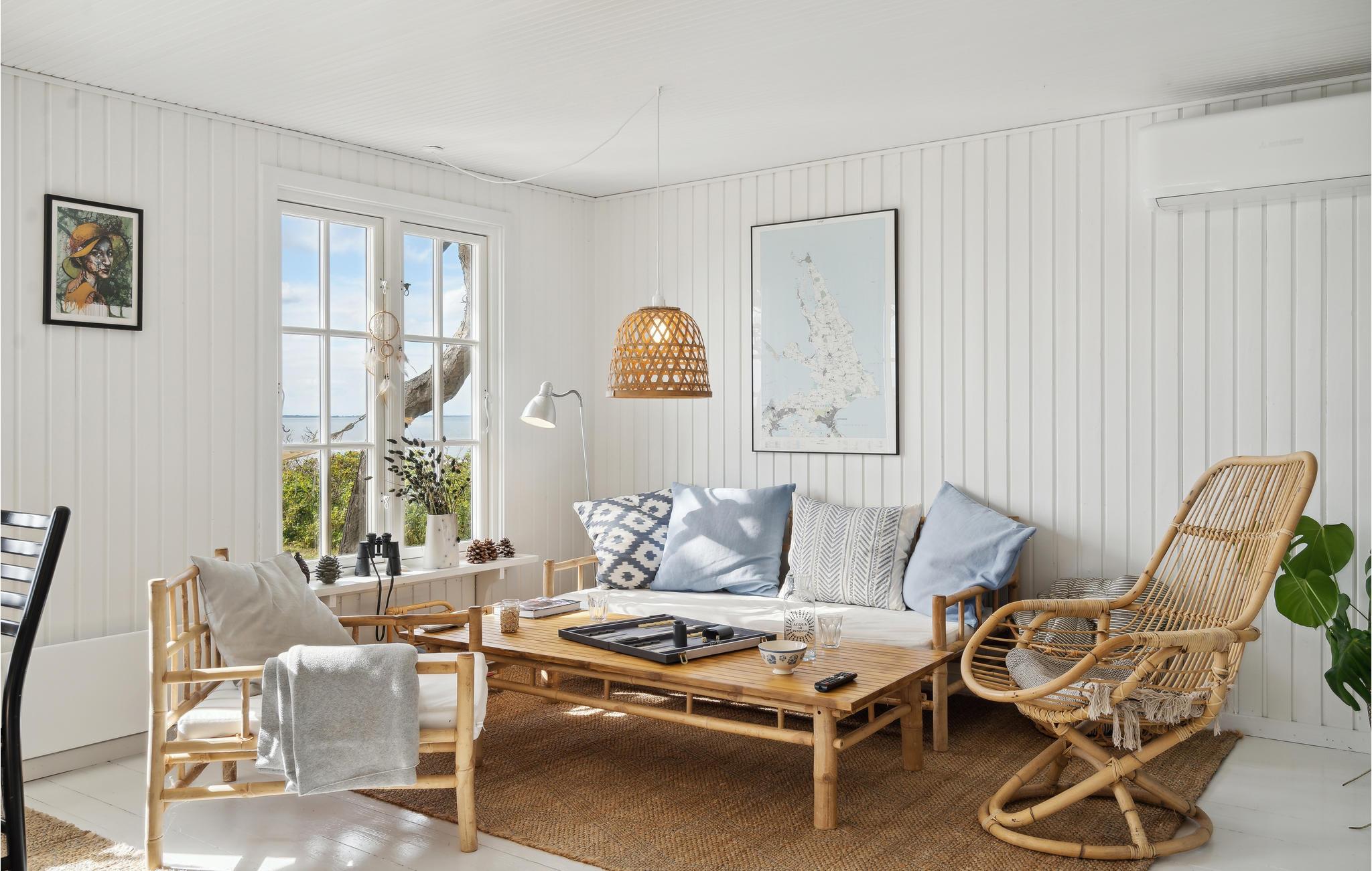 Tilbring en skøn ferie ved Dalby Bugt og i dette stilrene feriehus tæt på vandkanten. Her synes stranden og havet nærmest at være rykket ind i opholdsstuen, for blandingen af hvid, sand, lyseblå detaljer og et bambus-loungehjørne skaber en ægte strandstemning, som gør det nemt at slappe af. Takket være den vidunderlige beliggenhed tæt på det bløde sand kan I kigge ud på havet fra stuen. Oplev idyllen på den fantastiske strandgrund, hvor I kan nyde de smukke farverige solnedgange. Den moderne træterrasse indbyder til solbadning og grillaftener, og i hængekøjen kommer pulsen uden tvivl ned! Fra haven har I direkte adgang til den stenede sandstrand, hvor I kan tilbringe mange timer med at bade og hygge jer med dem, I holder af. I kan også medbringe jeres fiskeudstyr. Hvem ved, måske står der friskfanget fisk på menuen i aften.