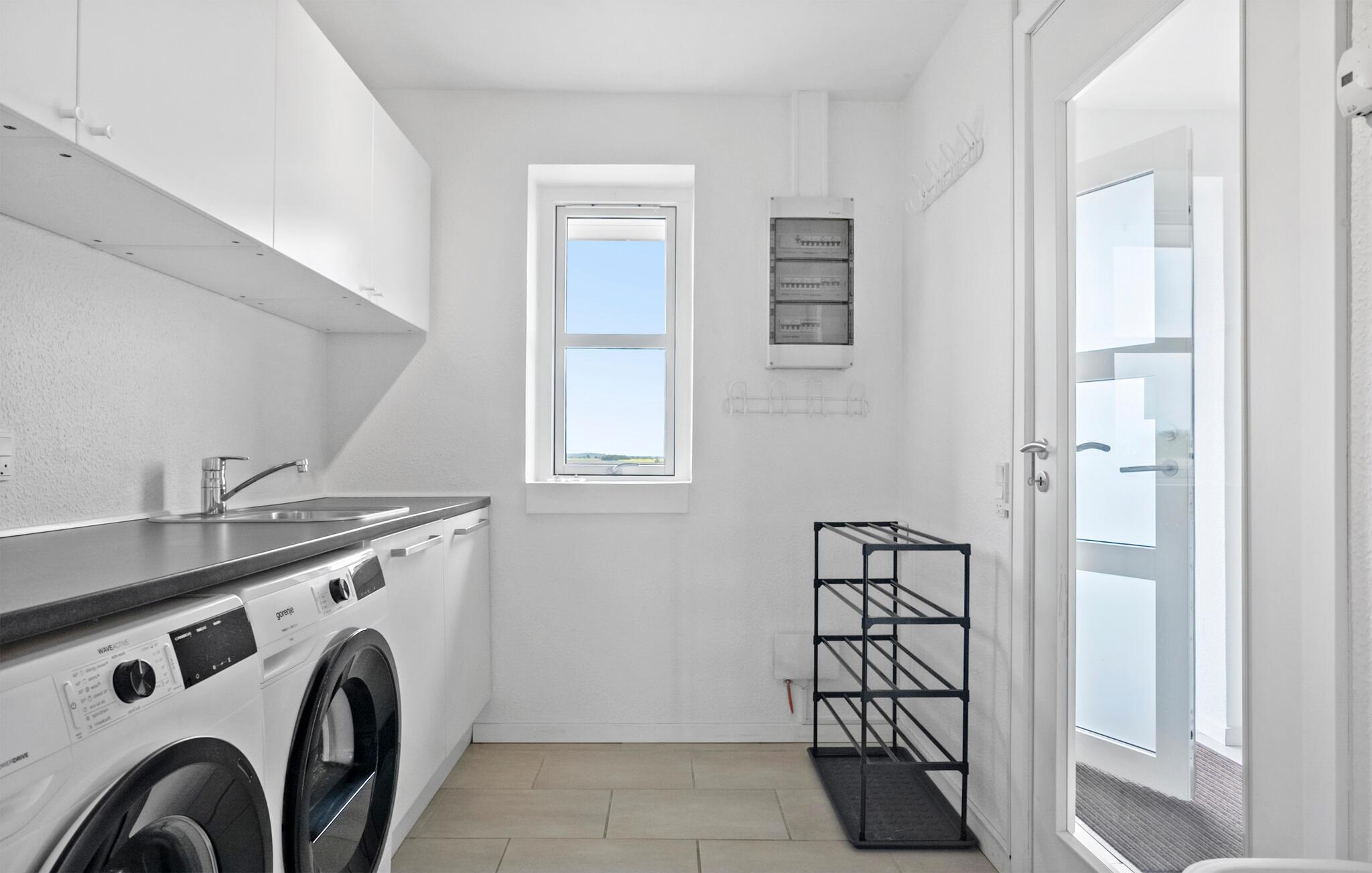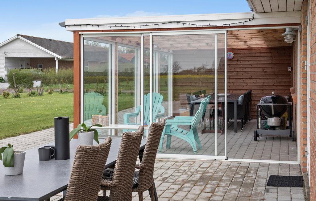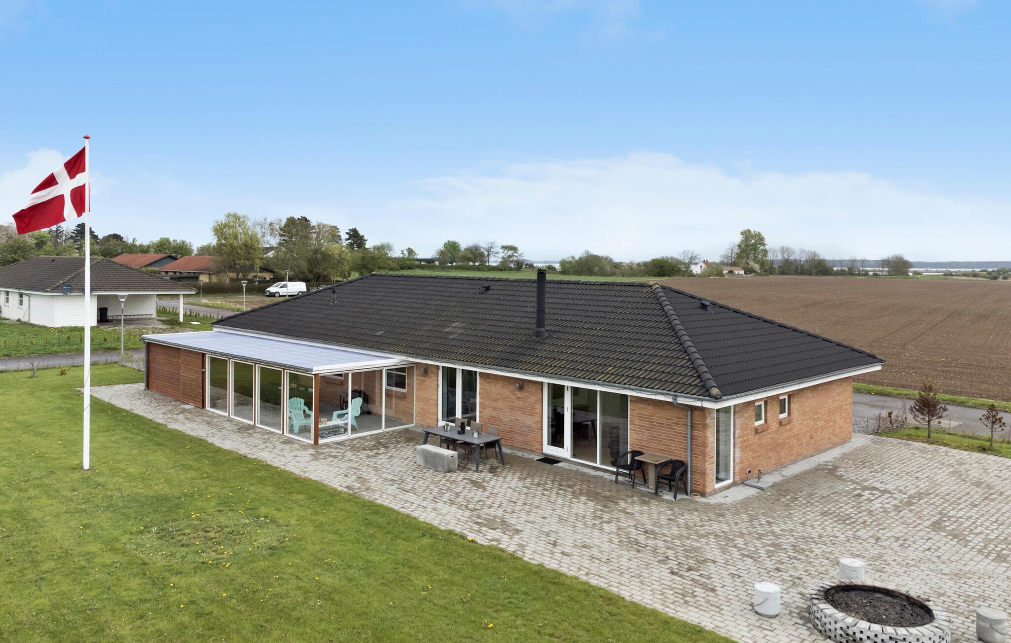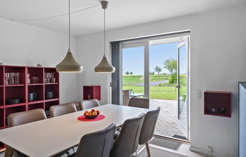 Dette rummelige feriehus i ét plan byder jer velkommen med et lyst og smagfuldt møbleret interiør og giver jer et komfortabelt hjem året rundt. Fremstil lækre måltider i det moderne køkken, mens børnene nyder de fortryllende legemuligheder. find sammen i sofaen om aftenen, tænd brændeovnen og stream en spændende film.
