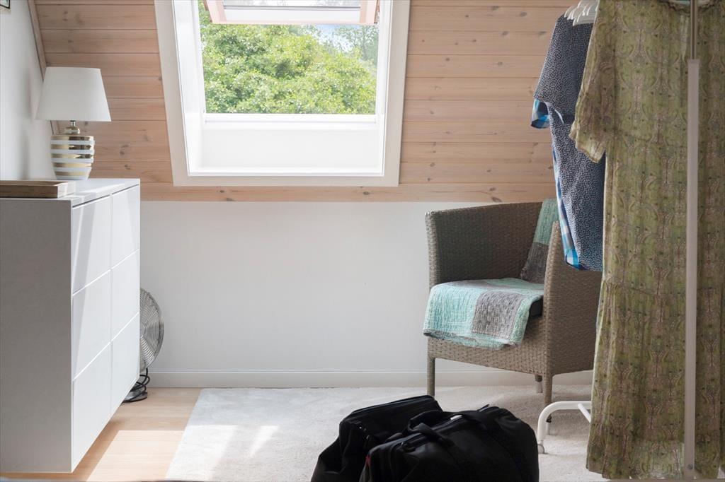 Centralt i huset er en flot trappe op til 1. sal, hvor man finder to gode soveværelser og endnu et toilet. Soveværelserne er hyggelige med skrævægge og trægulve, men de er også lyst indrettet med komfortable senge og opbevaringsplads. I det ene værelse er to enkeltsenge, mens det andet værelse har en god dobbeltseng. Toilettet lige ved siden af soveværelserne er mindre, men giver ekstra komfort, når man er op til 4 personer i ferielejligheden.